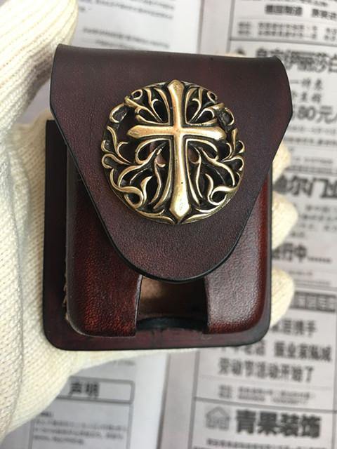 Style: Handmade Brown Thick Leather Lighter Cover Black Protective Lighter Cover For Men