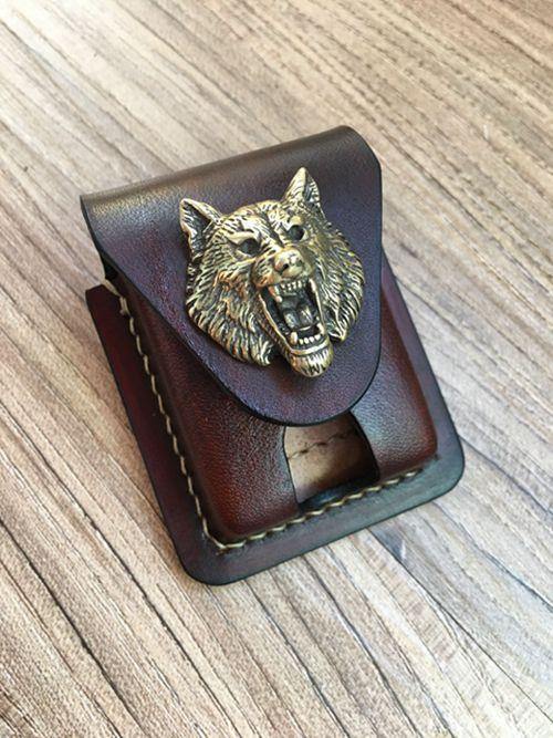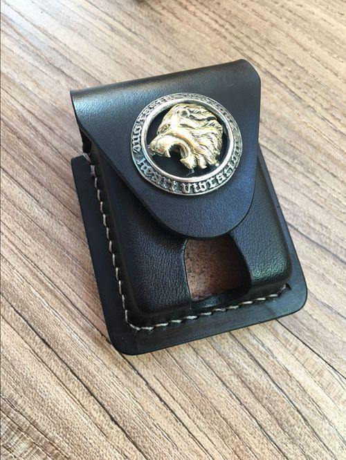 Design: Handmade Brown Thick Leather Lighter Cover Black Protective Lighter Cover For Men