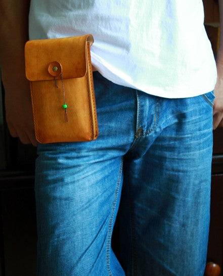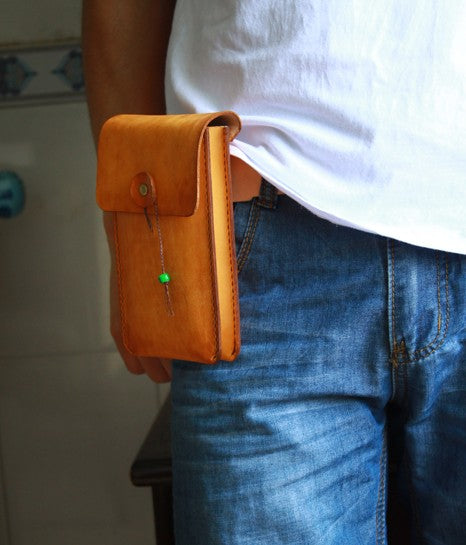 Design: Handmade Cool Leather Belt Pouch Mens Waist Bag Cell Phone Holsters for Men