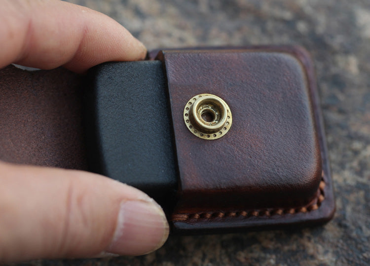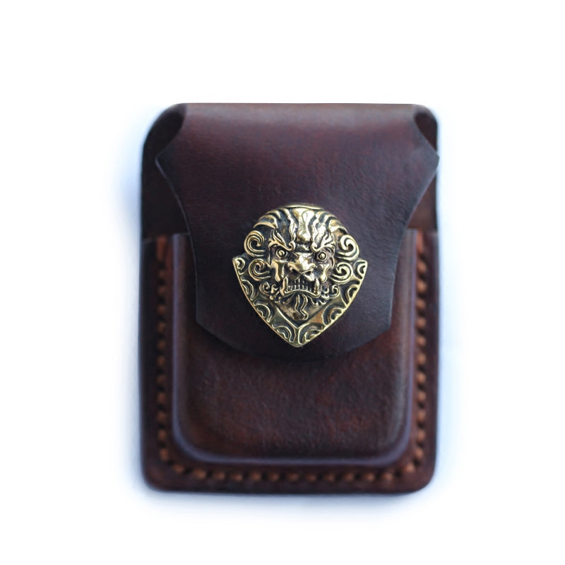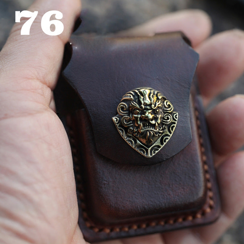 Handmade Cool Mens Leather Zippo Lighter Cases with Loop Zippo lighter Holder with clips