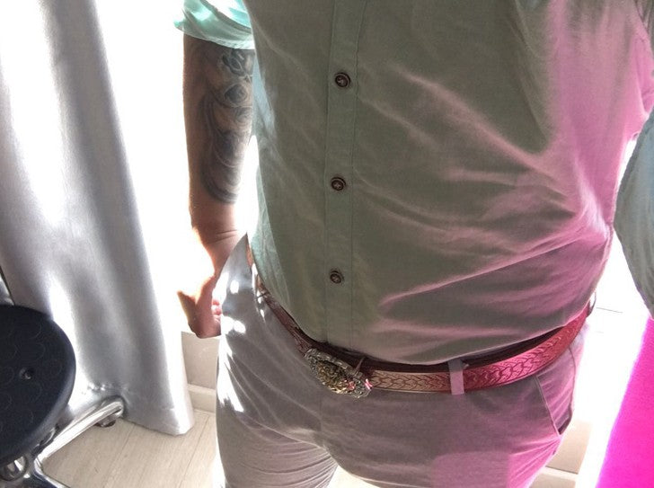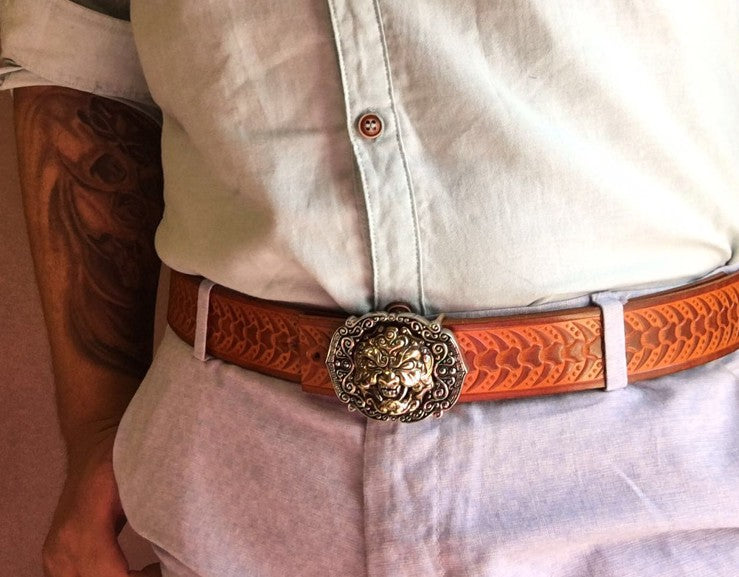 IMPORTANT NOTE: Order your custom leather belt 2" LARGER than your pant size (i.e., 36" pant size = 38" belt). Or, better yet, measure around your waist or hips, wherever you will wear the belt, and ADD 2" to that measurement. If you will be wearing a designer/western style buckle with this belt do NOT add the 2", as the designer/western style buckle adds 2" to the length of the belt.