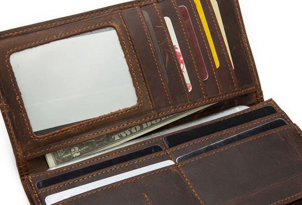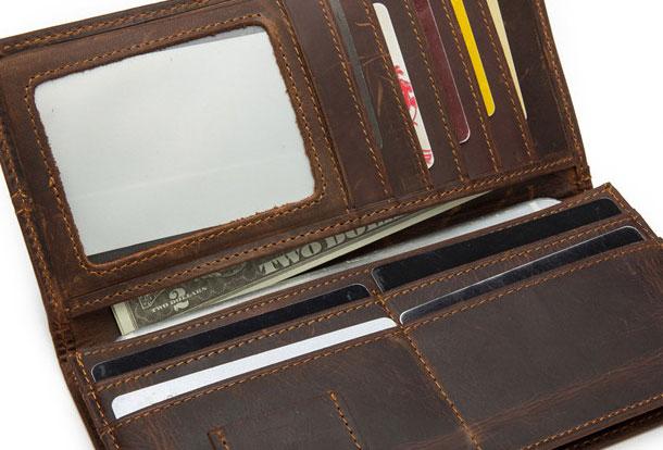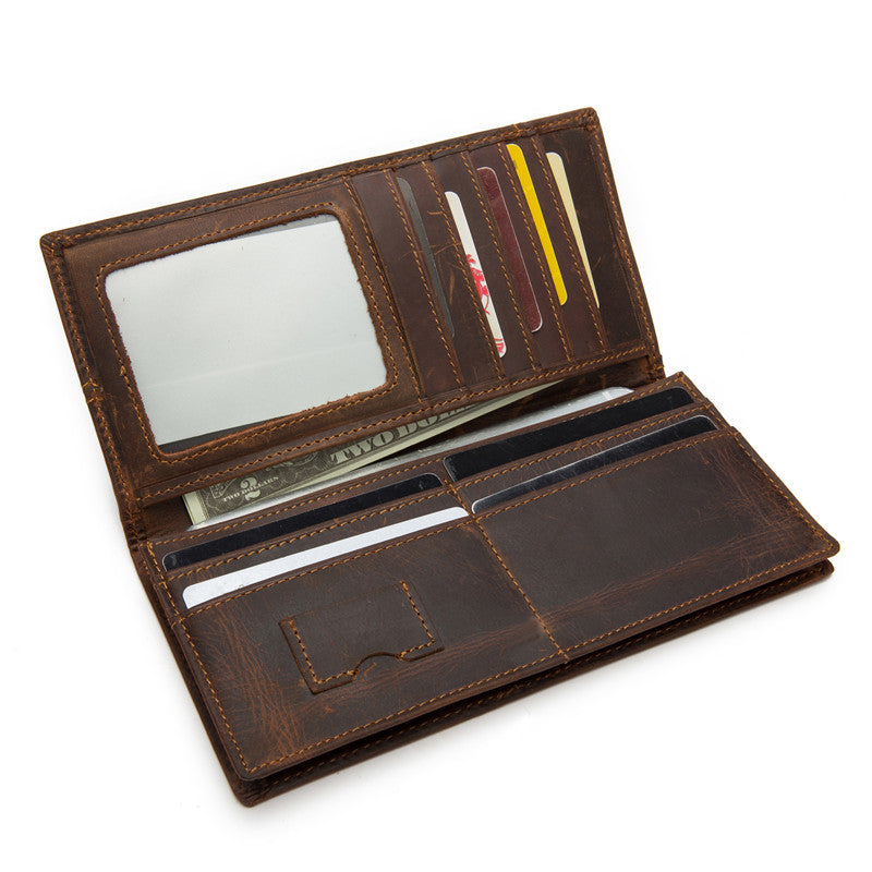 Style: Vintage Mens Leather Long Wallet Bifold Long Wallet Clutch For Men