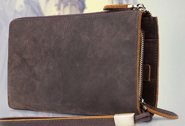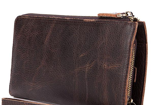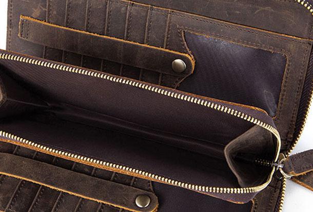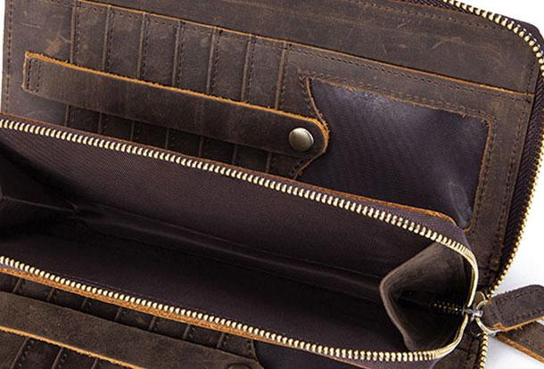 Design: Vintage Cool Leather Mens Long Wallet Zipper Bifold Wallet Clutch Wallet For Men