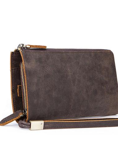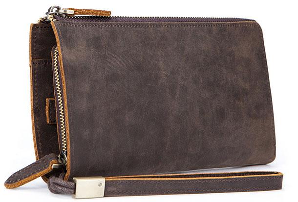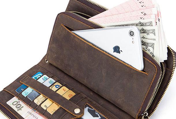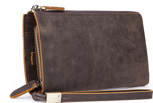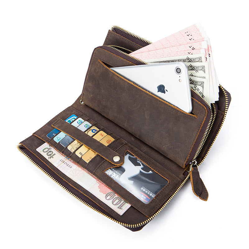 Style: Vintage Cool Leather Mens Long Wallet Zipper Bifold Wallet Clutch Wallet For Men