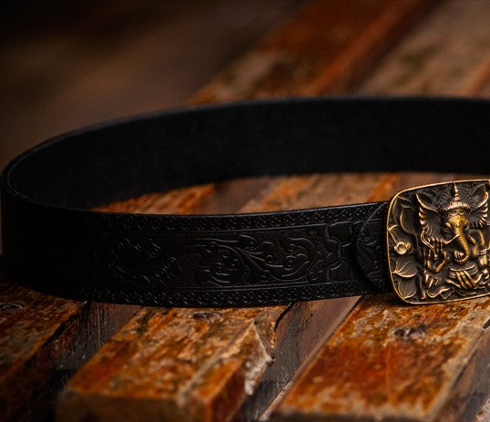 IMPORTANT NOTE: Order your custom leather belt 2" LARGER than your pant size (i.e., 36" pant size = 38" belt). Or, better yet, measure around your waist or hips, wherever you will wear the belt, and ADD 2" to that measurement. If you will be wearing a designer/western style buckle with this belt do NOT add the 2", as the designer/western style buckle adds 2" to the length of the belt.