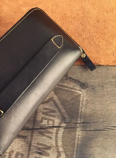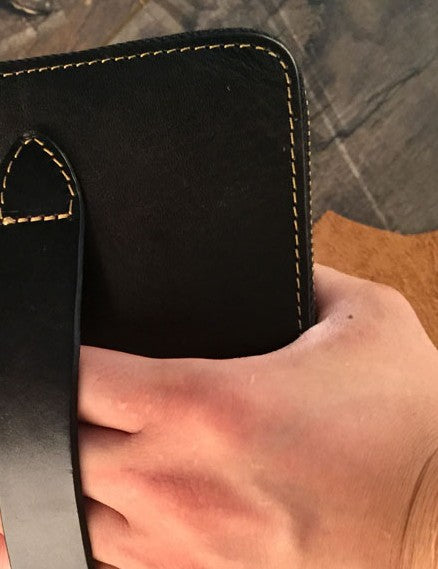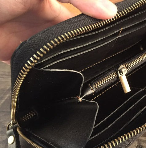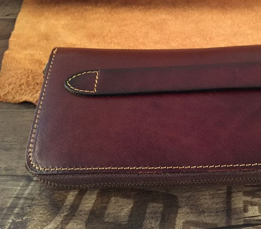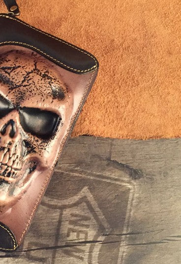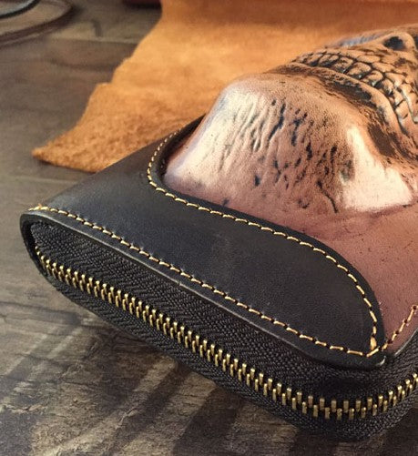 Style: Handmade Genuine Leather Mens Clutch Cool Long Wallet Skull Zipper Clutch Wristlet Wallet for Men