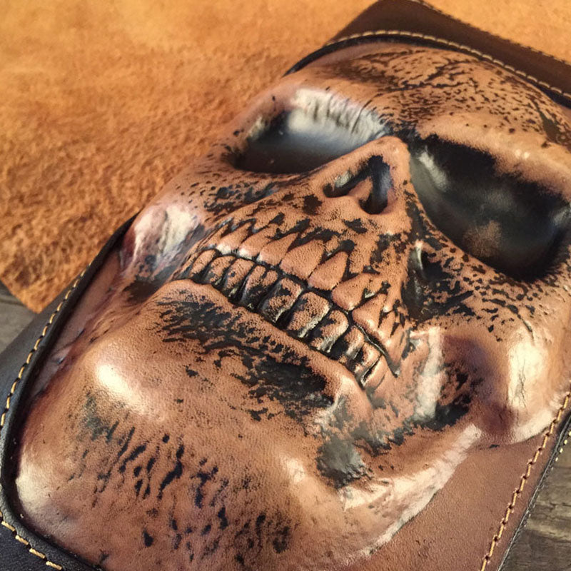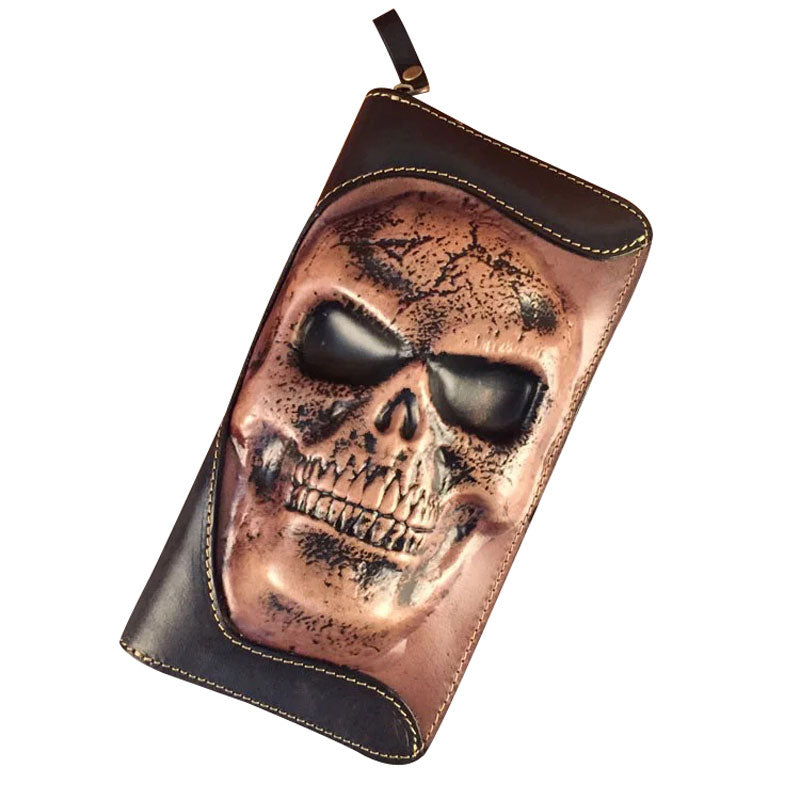 Design: Handmade Genuine Leather Mens Clutch Cool Long Wallet Skull Zipper Clutch Wristlet Wallet for Men