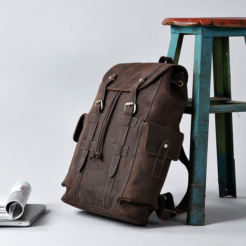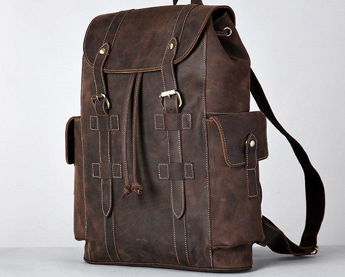 Style: Handmade Genuine Leather Mens Cool Backpack Sling Bag Large Travel Bag Hiking Bag for Men