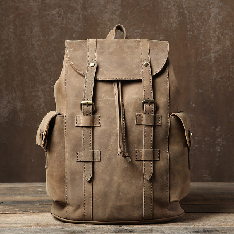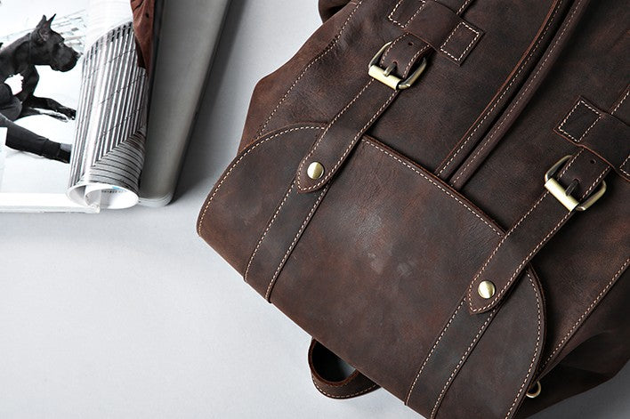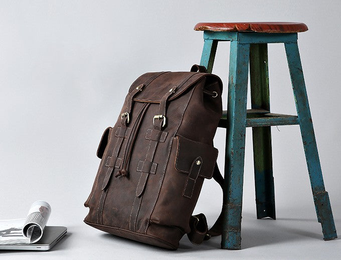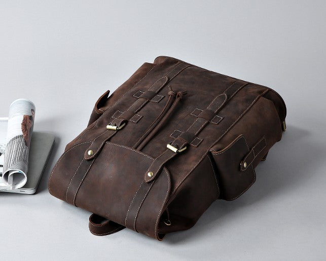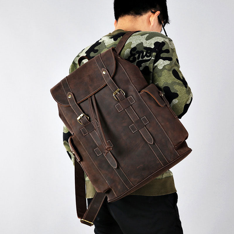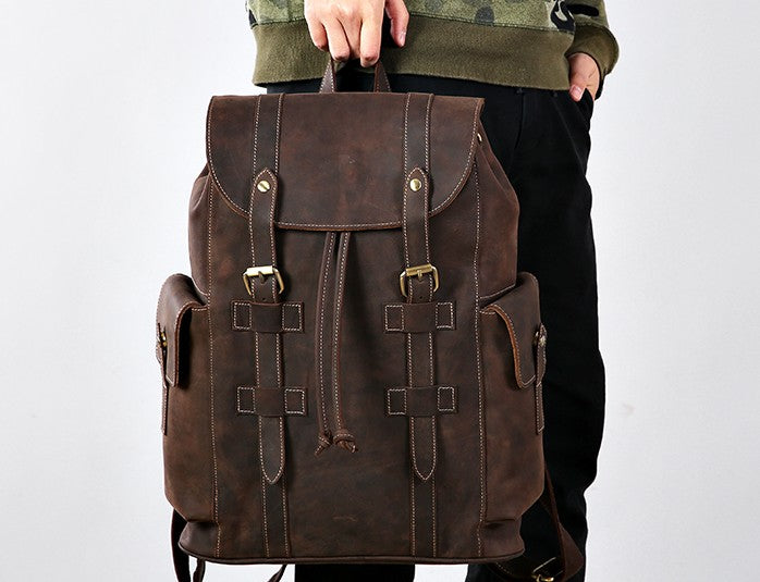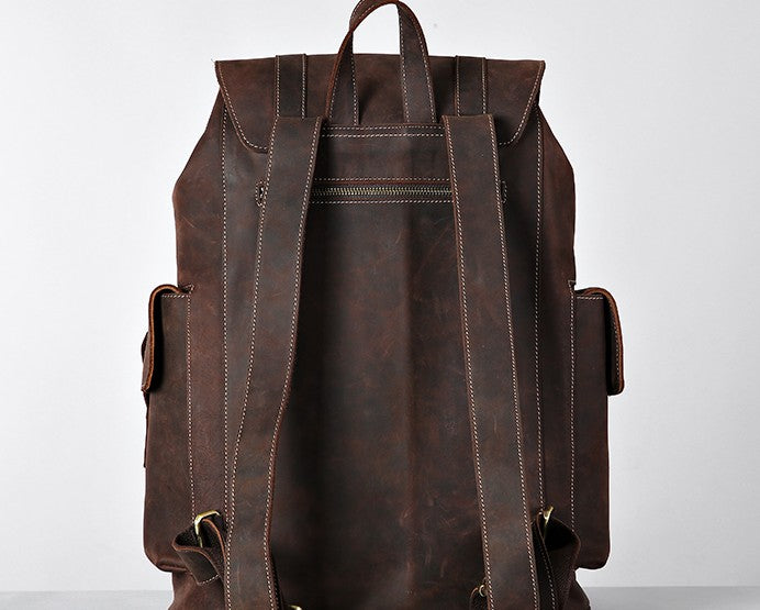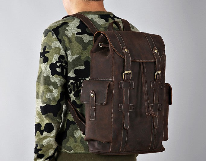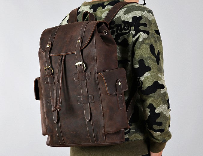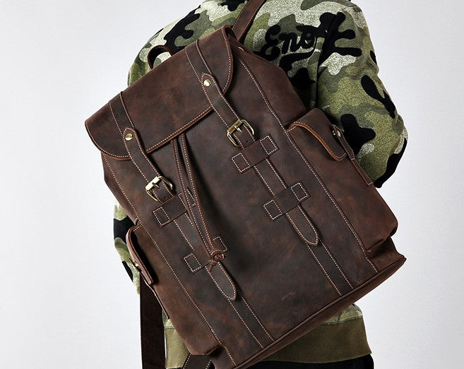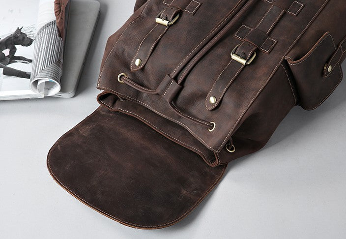 Handmade Genuine Leather Mens Cool Backpack Large Travel Bag Hiking Bag for Men