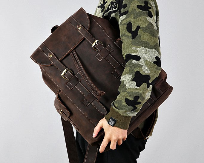 Design: Handmade Genuine Leather Mens Cool Backpack Sling Bag Large Travel Bag Hiking Bag for Men