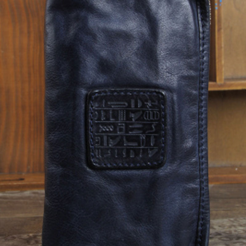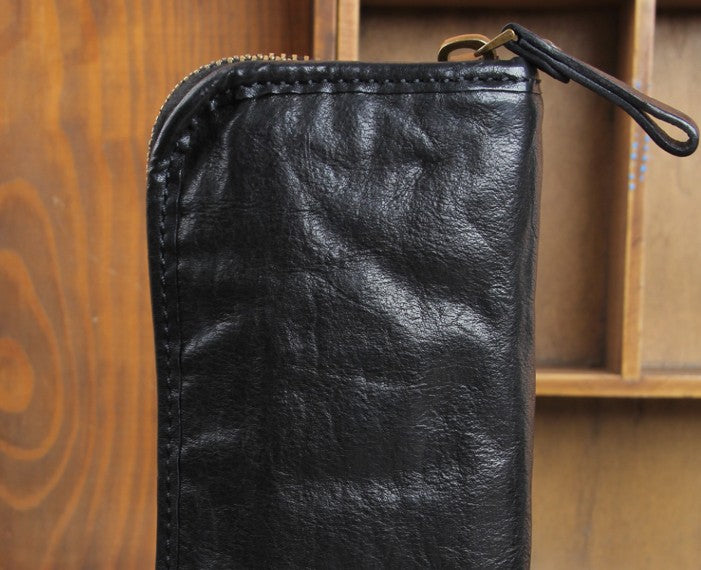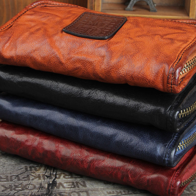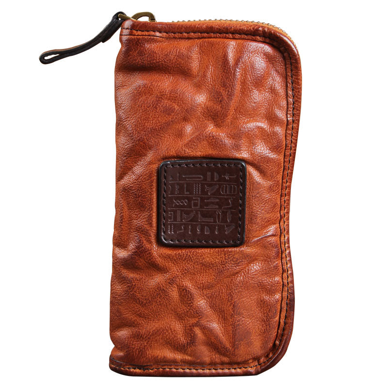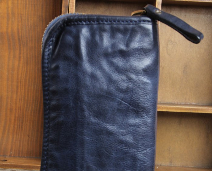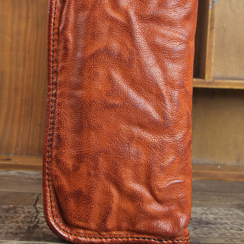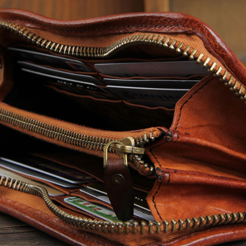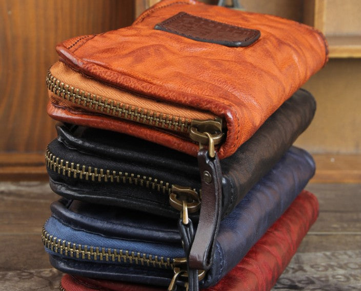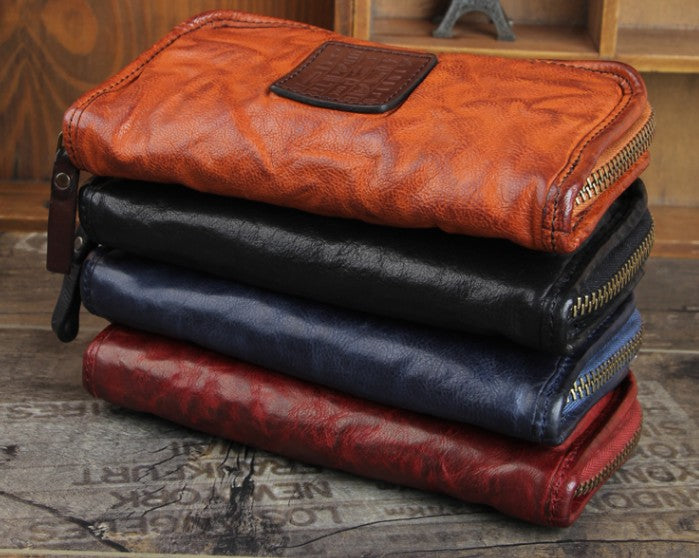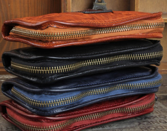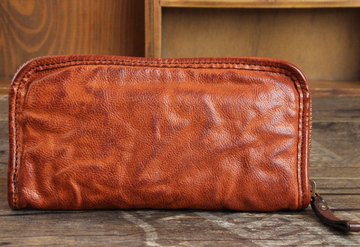 Style: Handmade Genuine Leather Mens Cool Long Leather Wallet Zipper Clutch Wristlet Wallet for Men