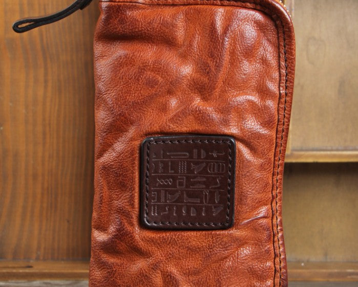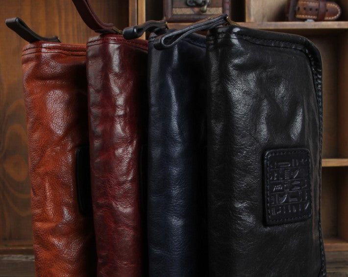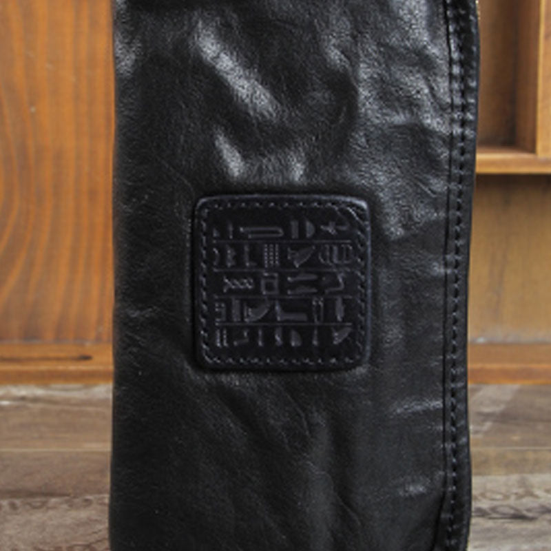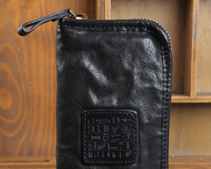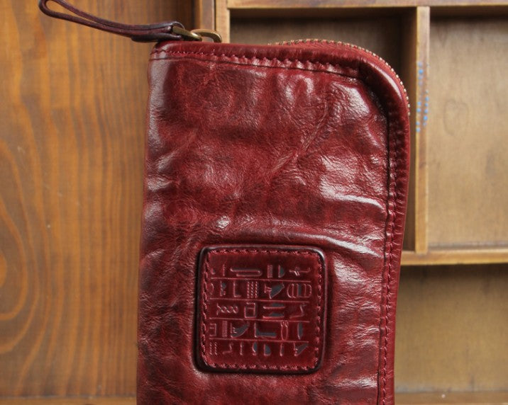 Design: Handmade Genuine Leather Mens Cool Long Leather Wallet Zipper Clutch Wristlet Wallet for Men