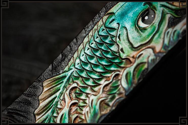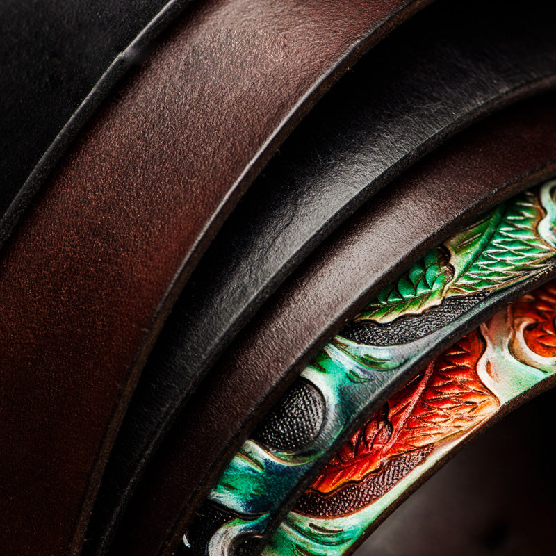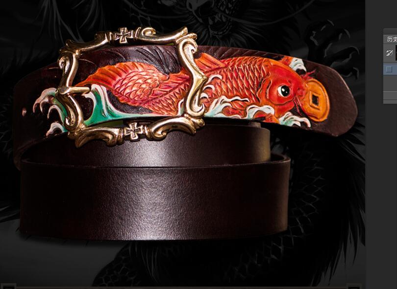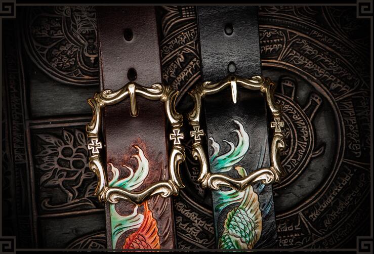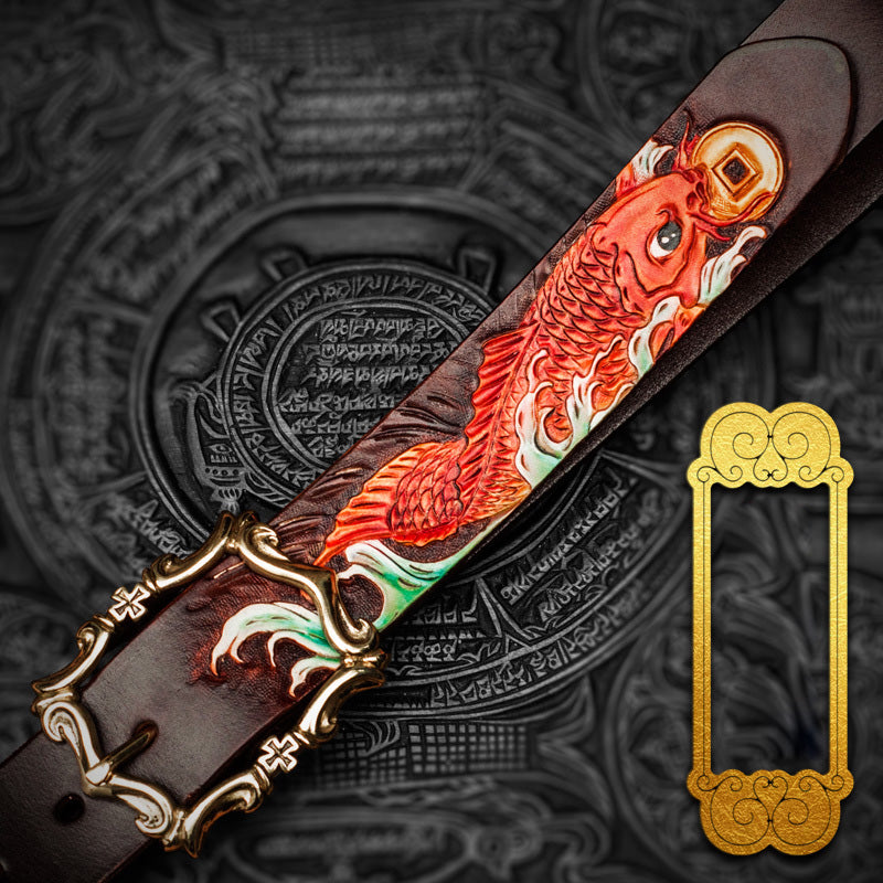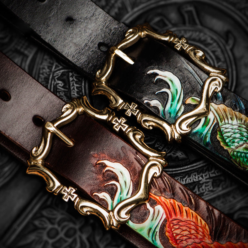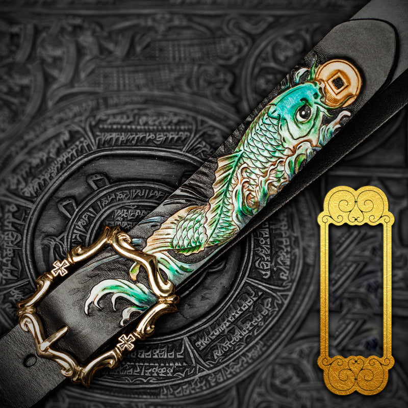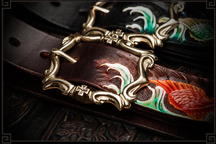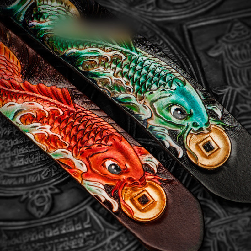 Style: Handmade Genuine Leather Tooled Carp Mens Belt Custom Cool Leather Men Belt for Men