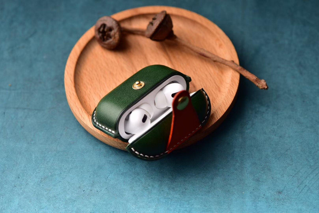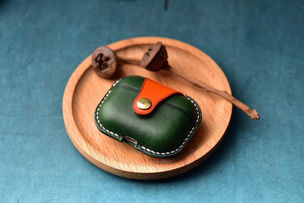 Design: Handmade Green Leather AirPods Pro Case Leather AirPods Case Airpod Case Cover