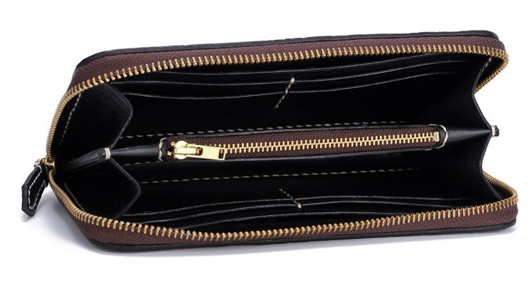 Slots: 2 full size bill slot, 12 card holders, 1 zipper slot