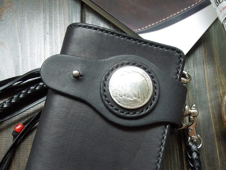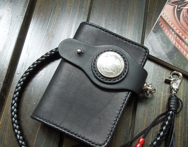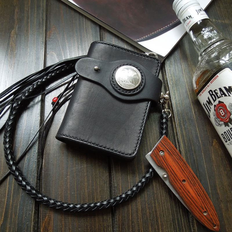 Design: Handmade Leather Biker billfold Wallet Mens Cool Chain Wallet Trucker Wallet with Chain
