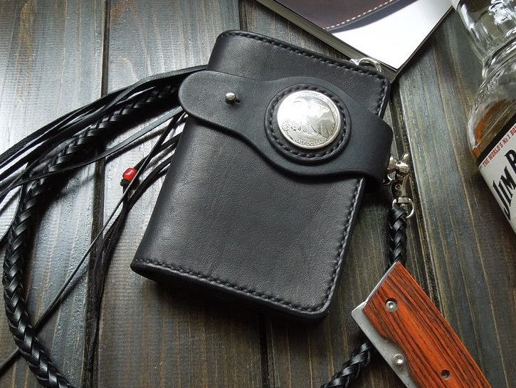 Handmade Leather Biker Wallet Mens Cool billfold Chain Wallet Trucker Wallet with Chain