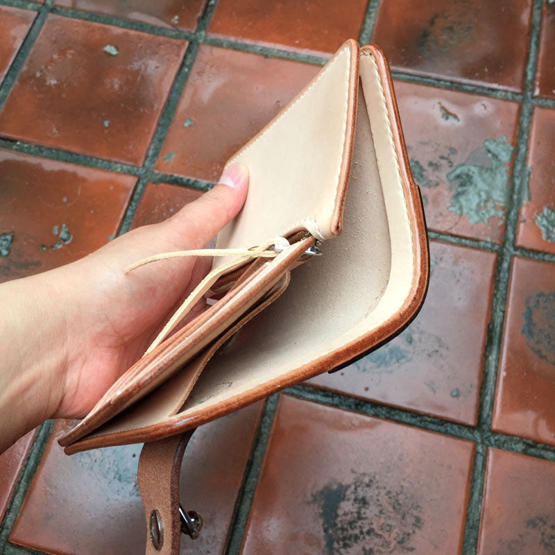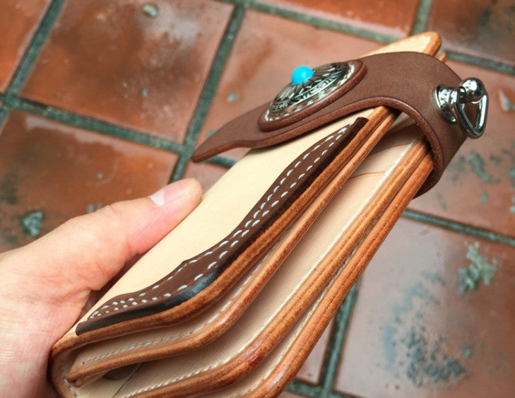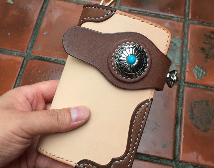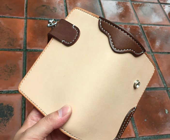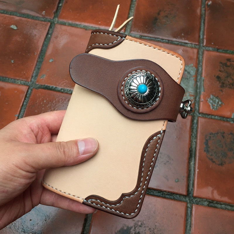 Handmade Leather Biker Wallet Mens Cool billfold Chain Wallet Trucker Wallet with Chain