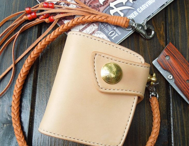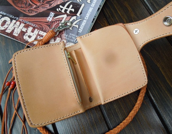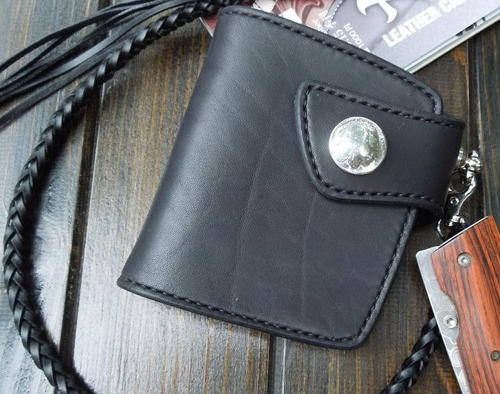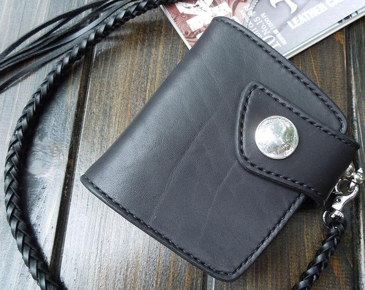 Style: Handmade Leather Biker billfold Wallet Mens Cool Chain Wallet Trucker Wallet with Chain