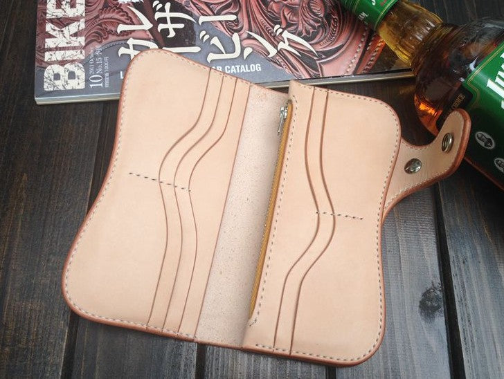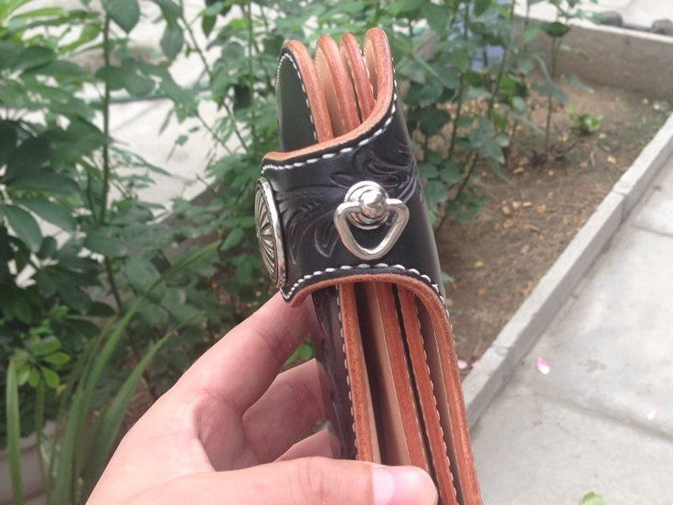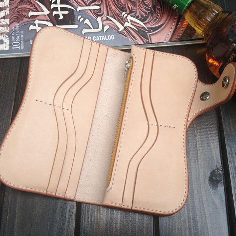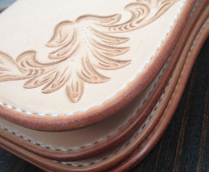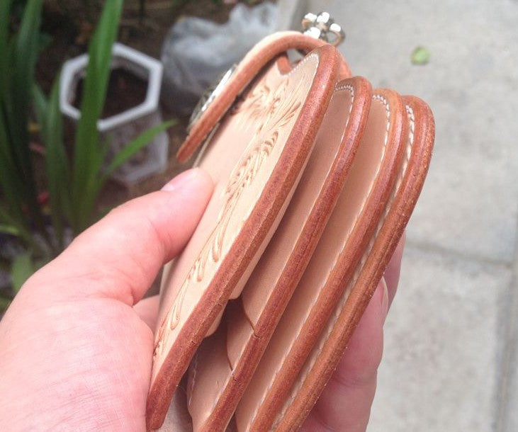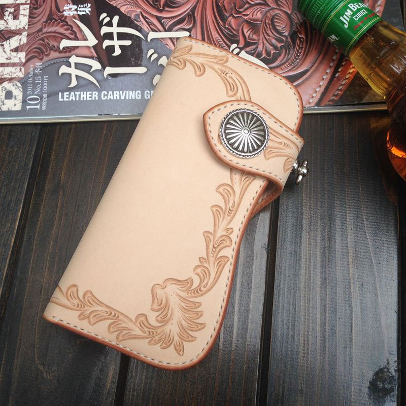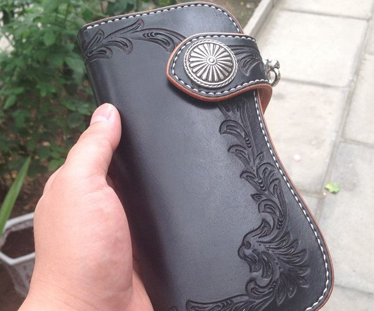 Style: Handmade Leather Biker Wallet Tooled Floral Mens Cool Chain Wallet Trucker Wallet with Chain
