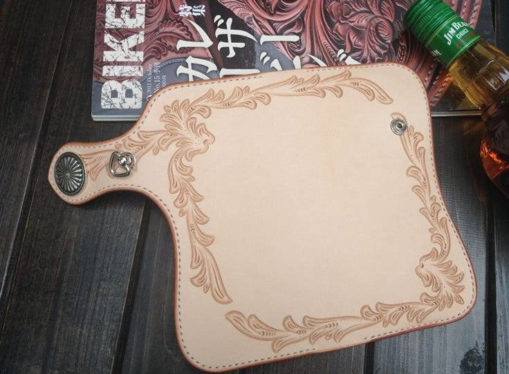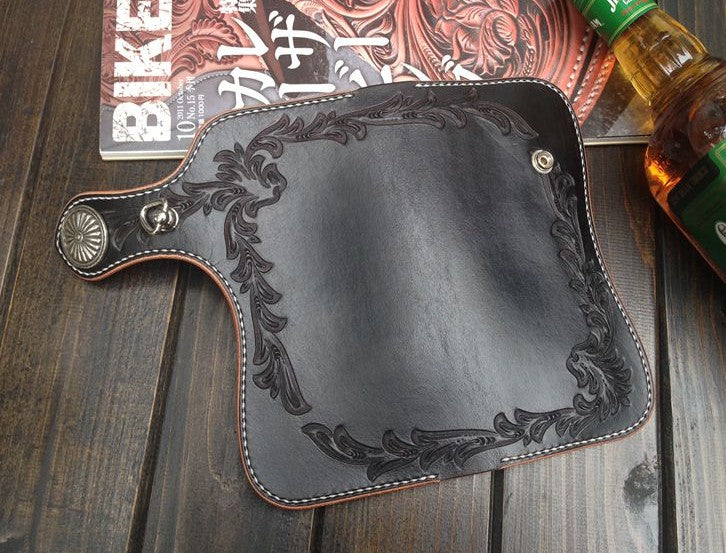 Design: Handmade Leather Biker Wallet Tooled Floral Mens Cool Chain Wallet Trucker Wallet with Chain