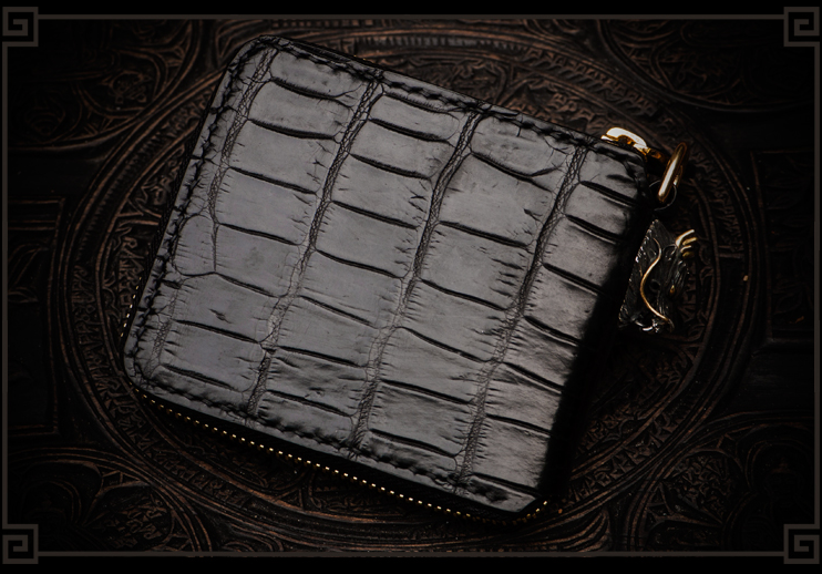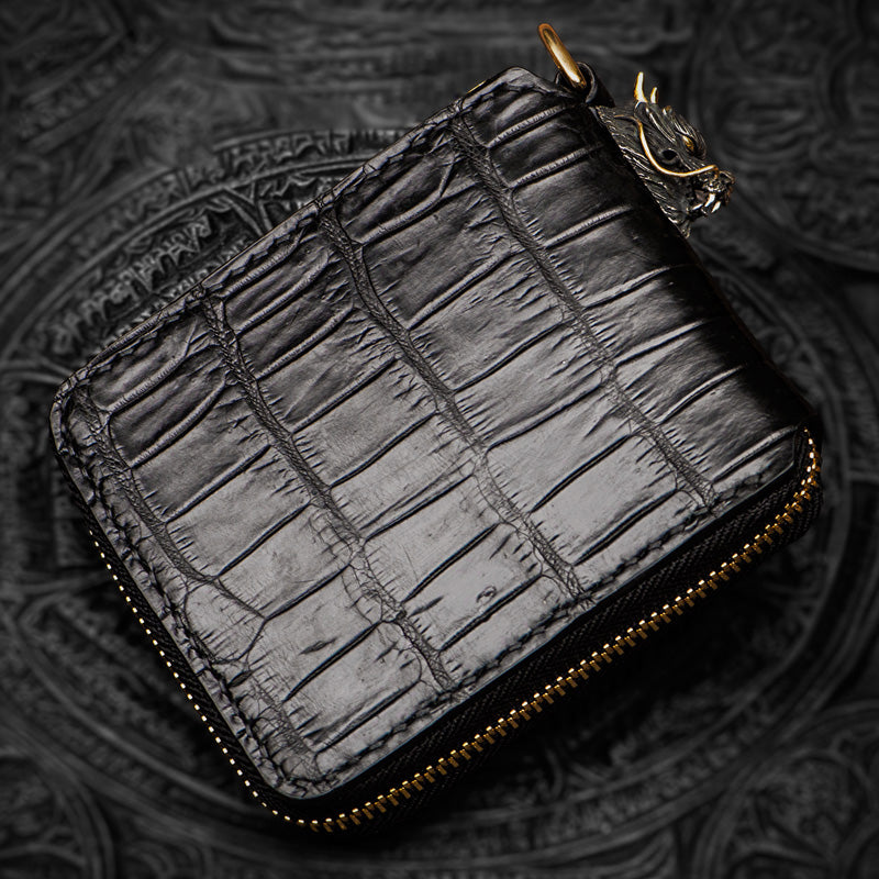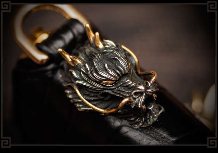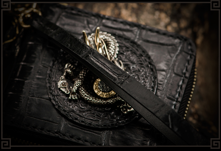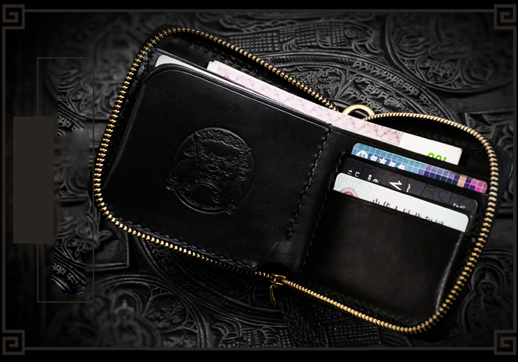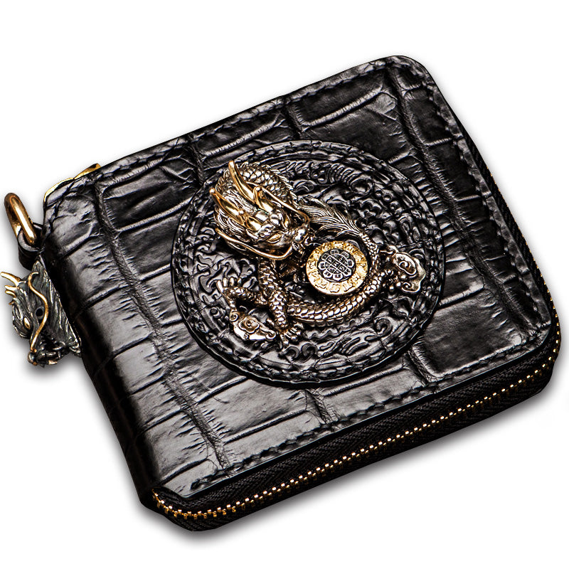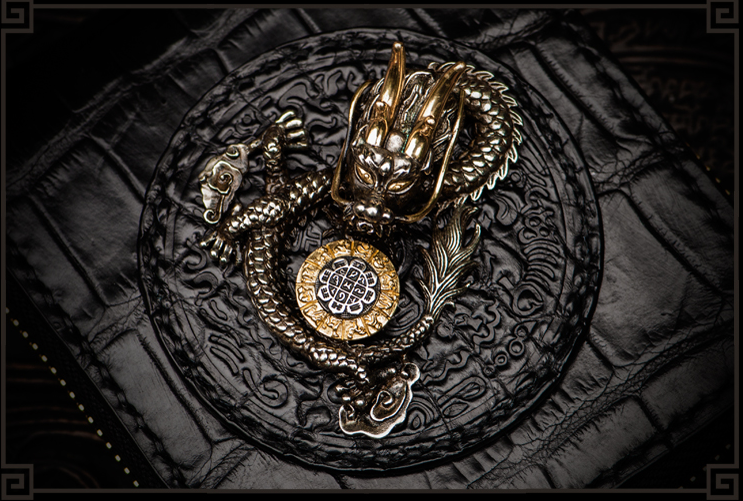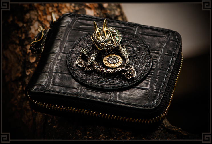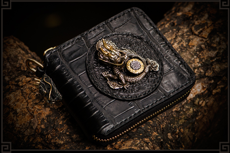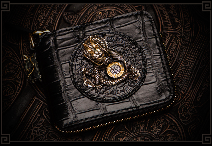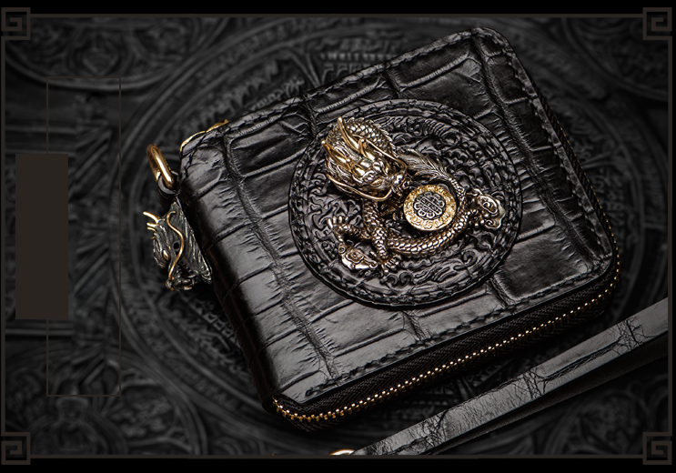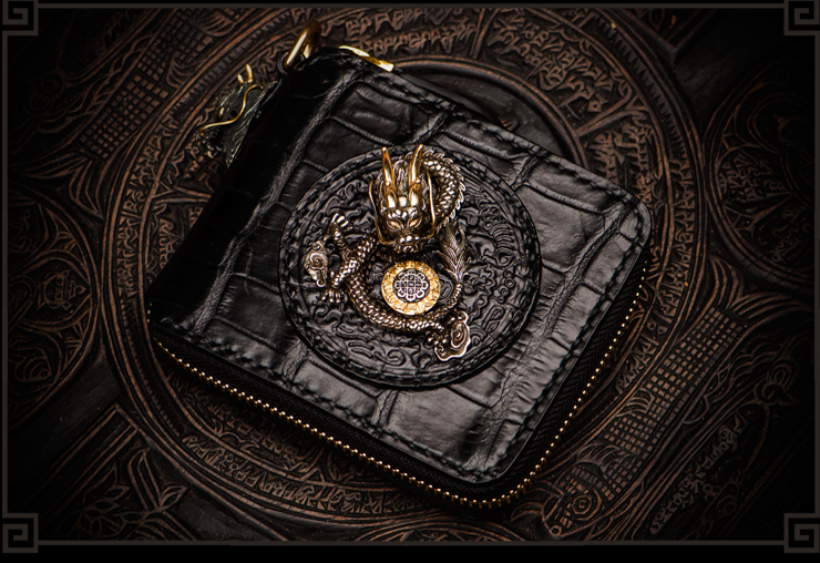 Design:Handmade Leather Chinese Dragon Tooled Mens billfold Wallet Cool Chain Wallet Biker Wallet for Men