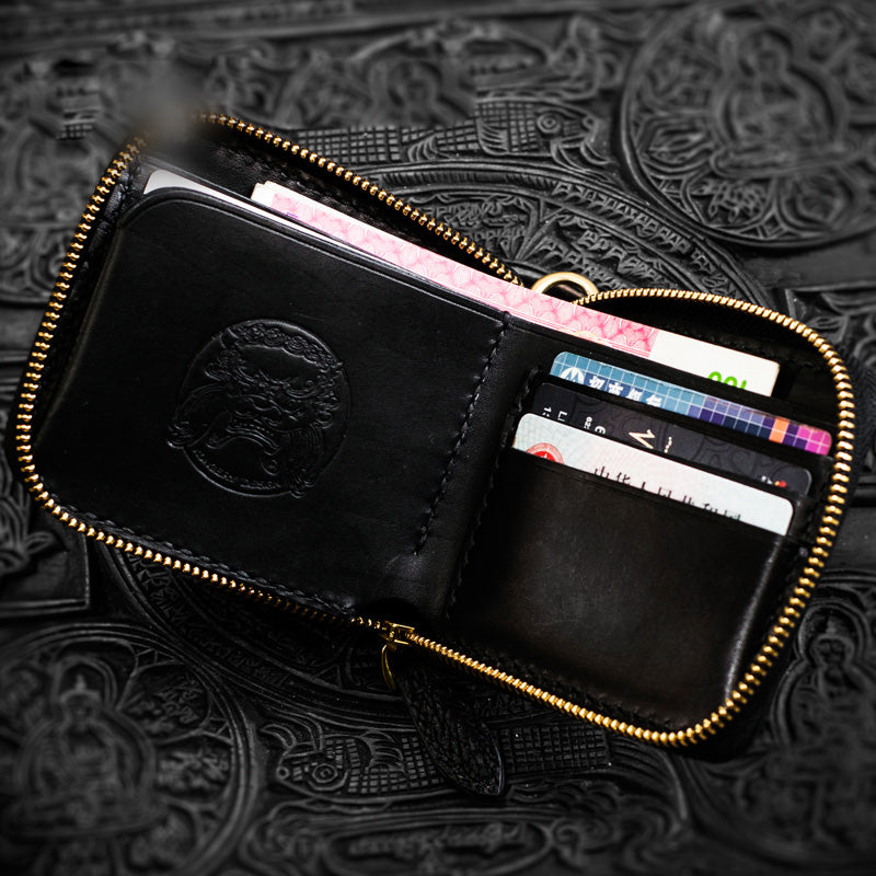Style: Handmade Leather Chinese Dragon Tooled Mens billfold Wallet Cool Chain Wallet Biker Wallet for Men