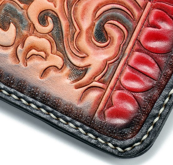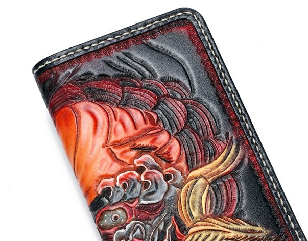 Design: Handmade Leather Chinese Lion Mens Chain Biker Wallet Cool Leather Wallet With Chain Wallets for Men