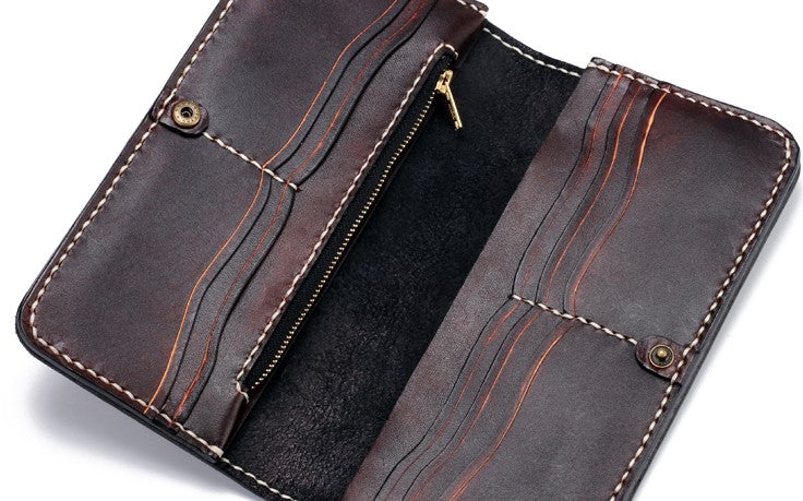 Style: Handmade Leather Chinese Lion Mens Chain Biker Wallet Cool Leather Wallet With Chain Wallets for Men