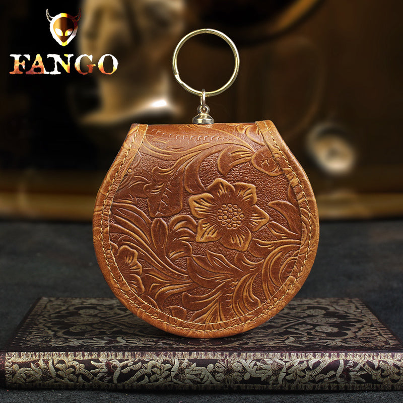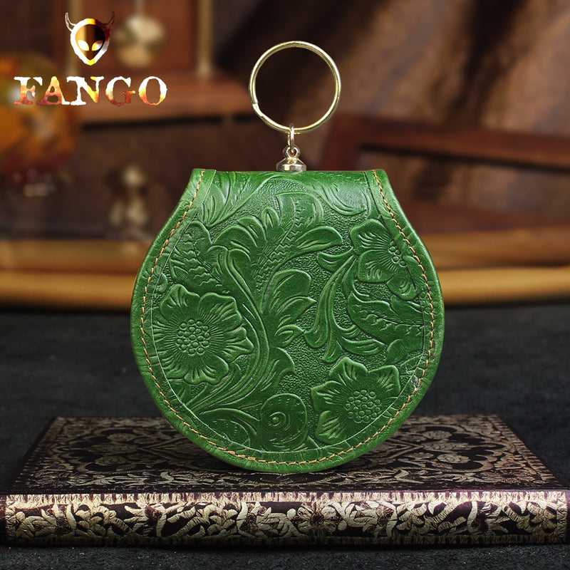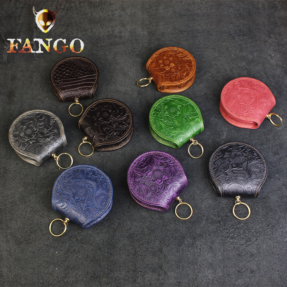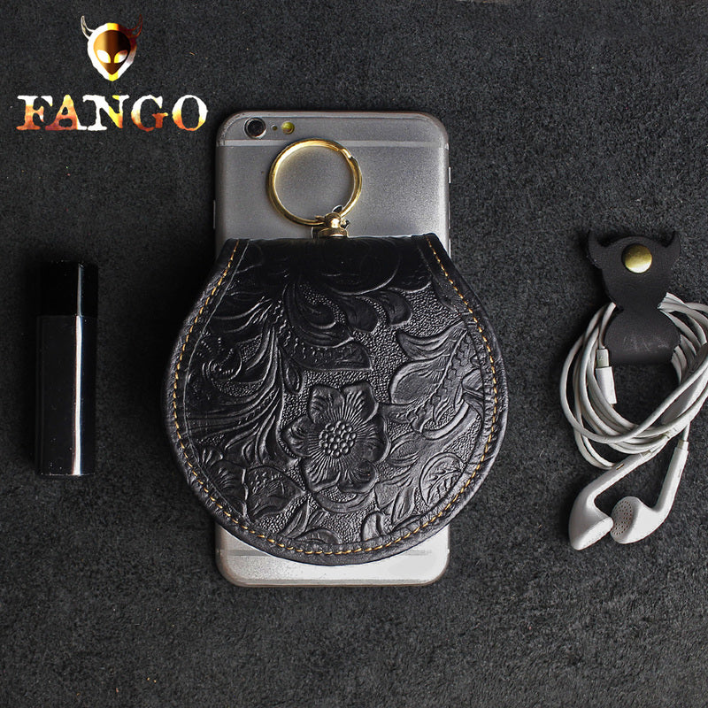 Style: Handmade Leather Round Floral Mens Cool Slim Change Wallet Coin Wallet Pouch for Men