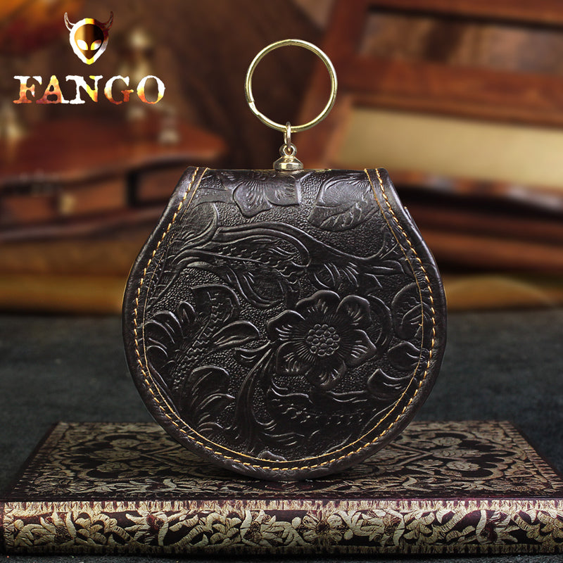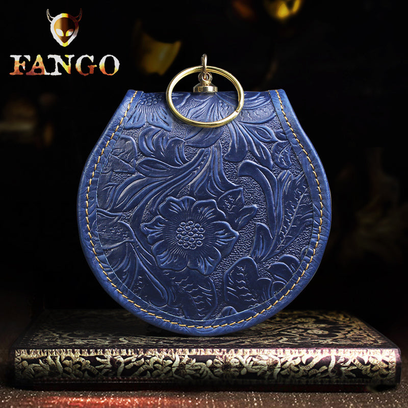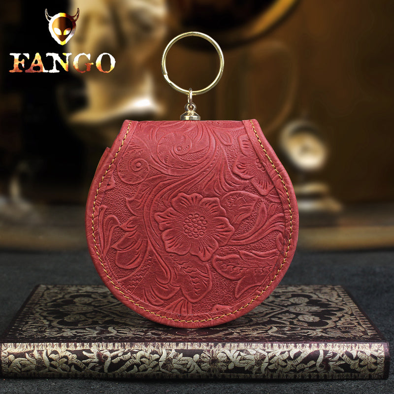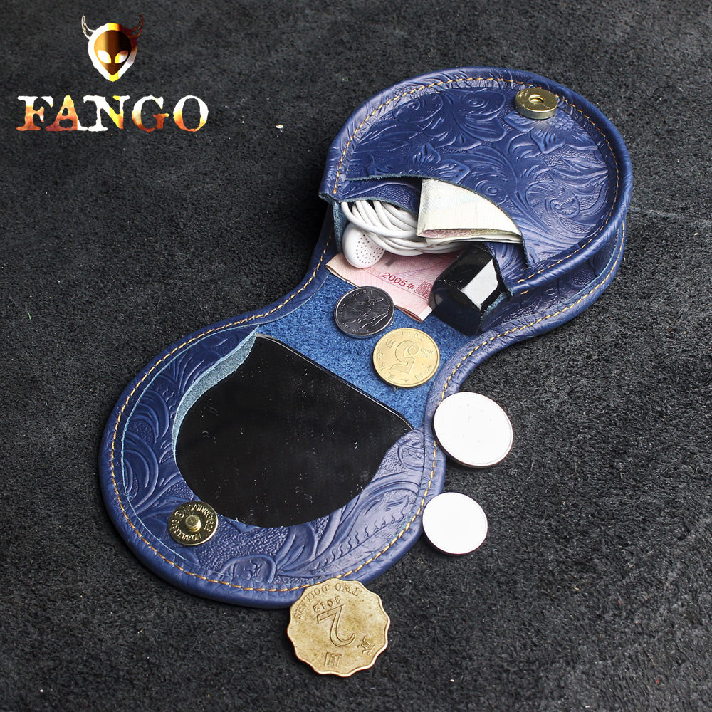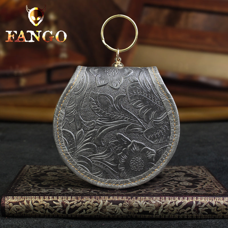 Style: Handmade Leather Round Floral Mens Cool Slim Change Wallet Coin Wallet Pouch for Men
