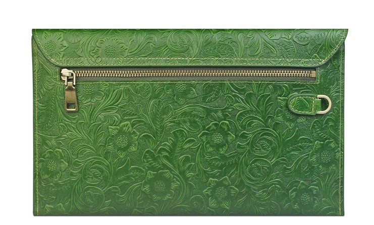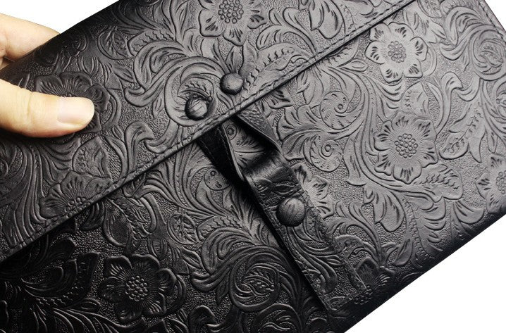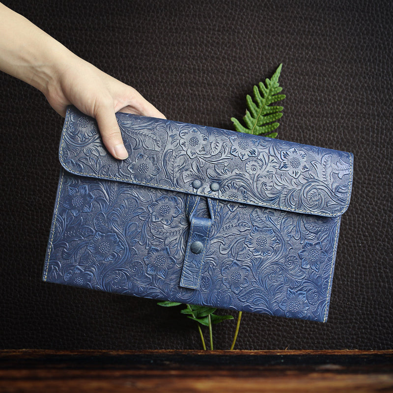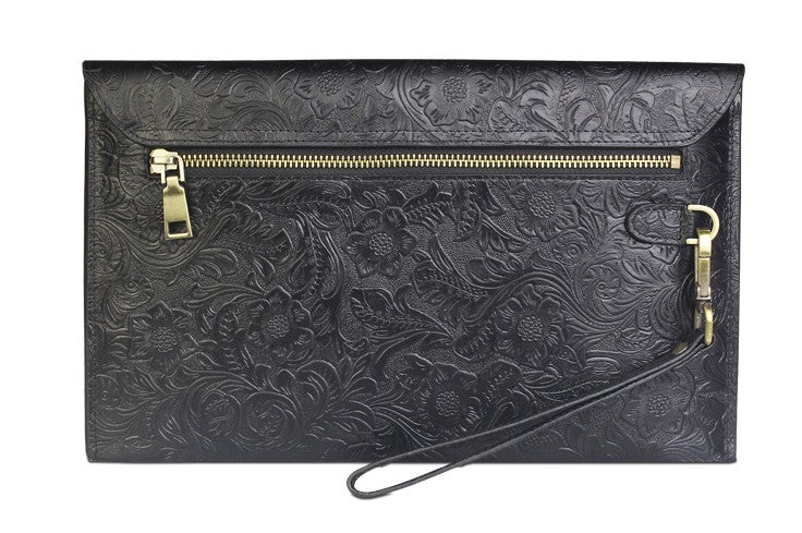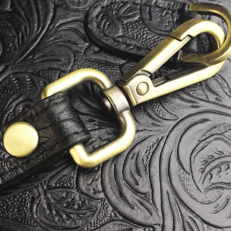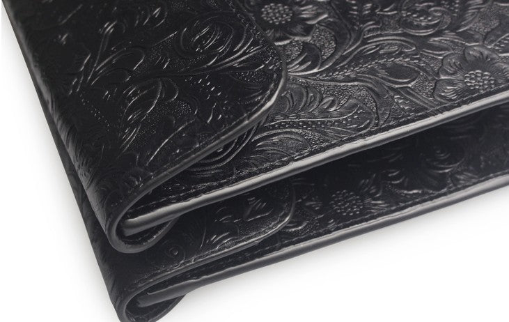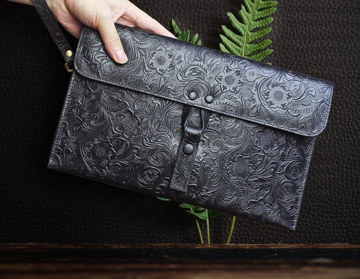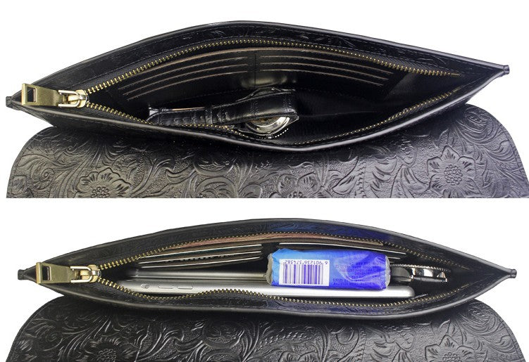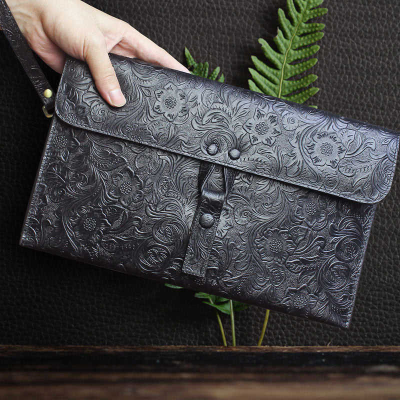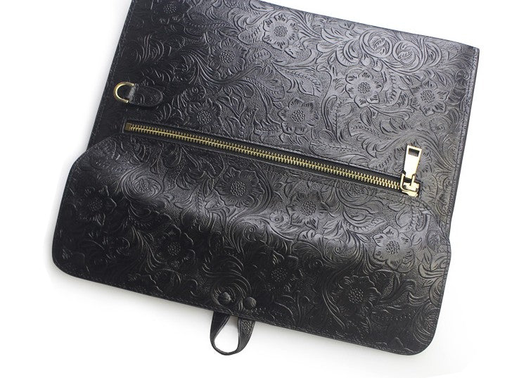 Design: Handmade Leather Floral Tooled Mens Clutch Cool Slim Wallet Zipper Clutch Wristlet Wallet for Men
