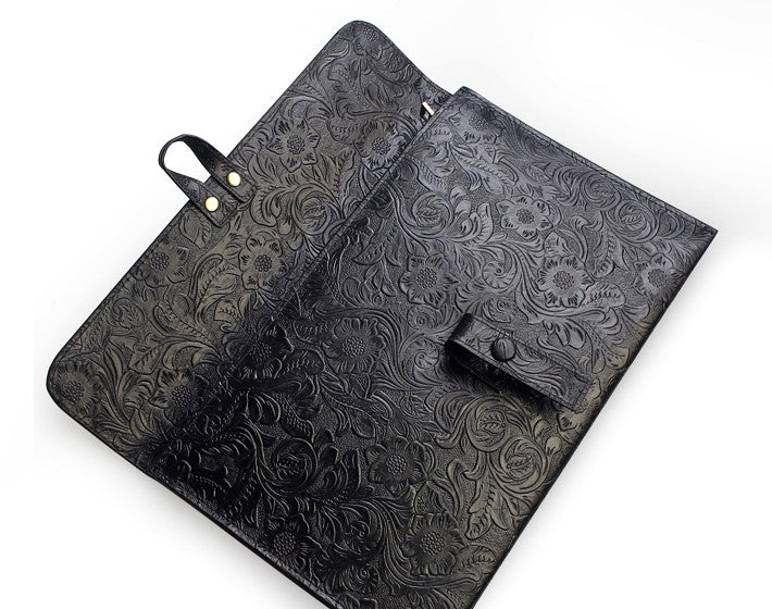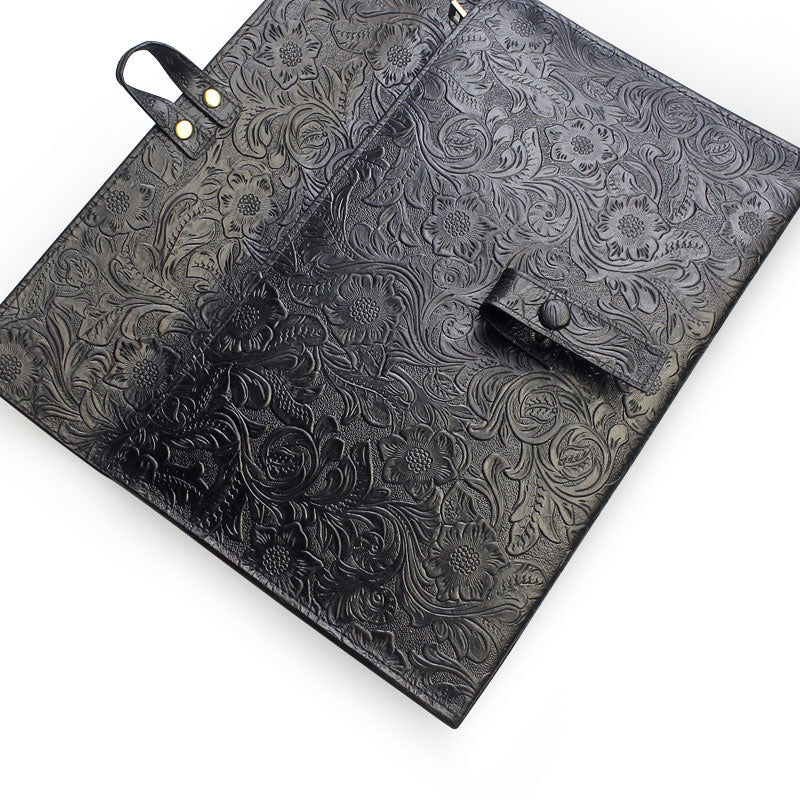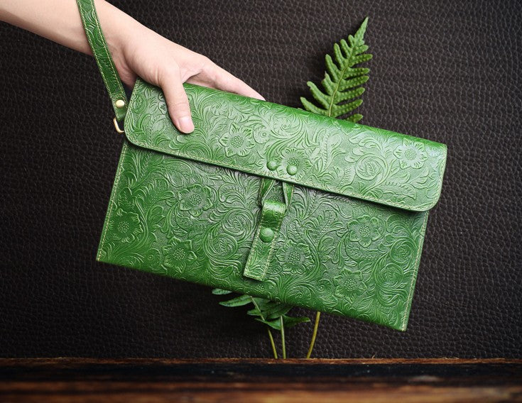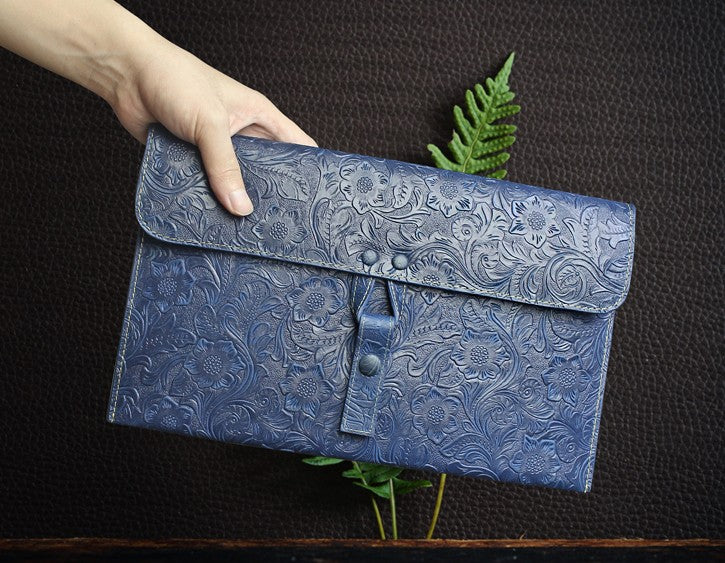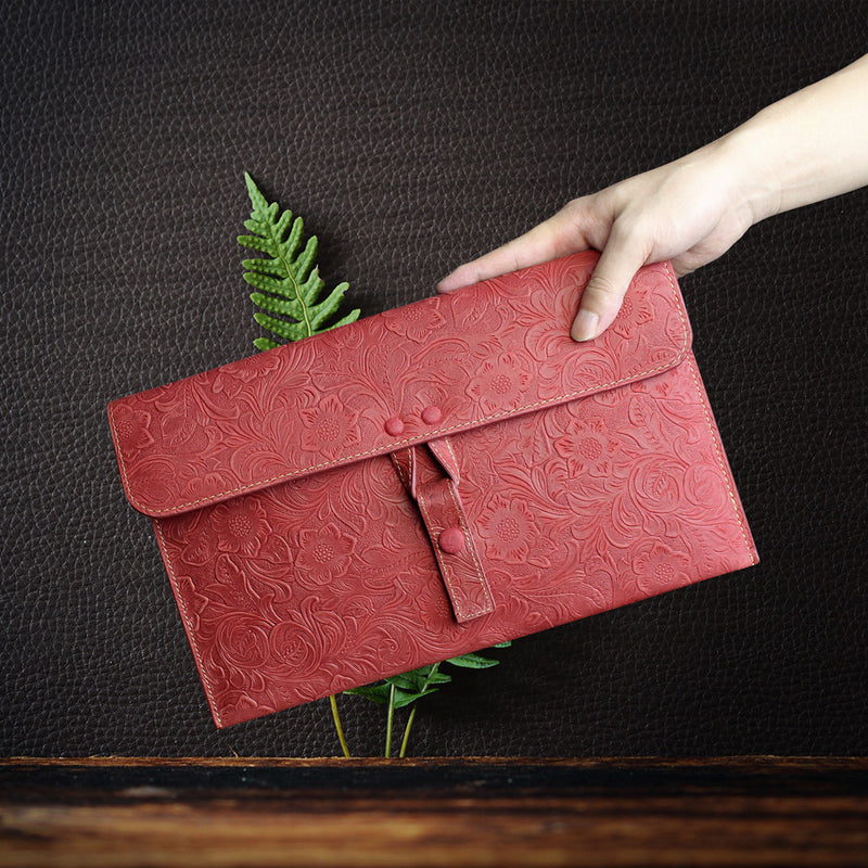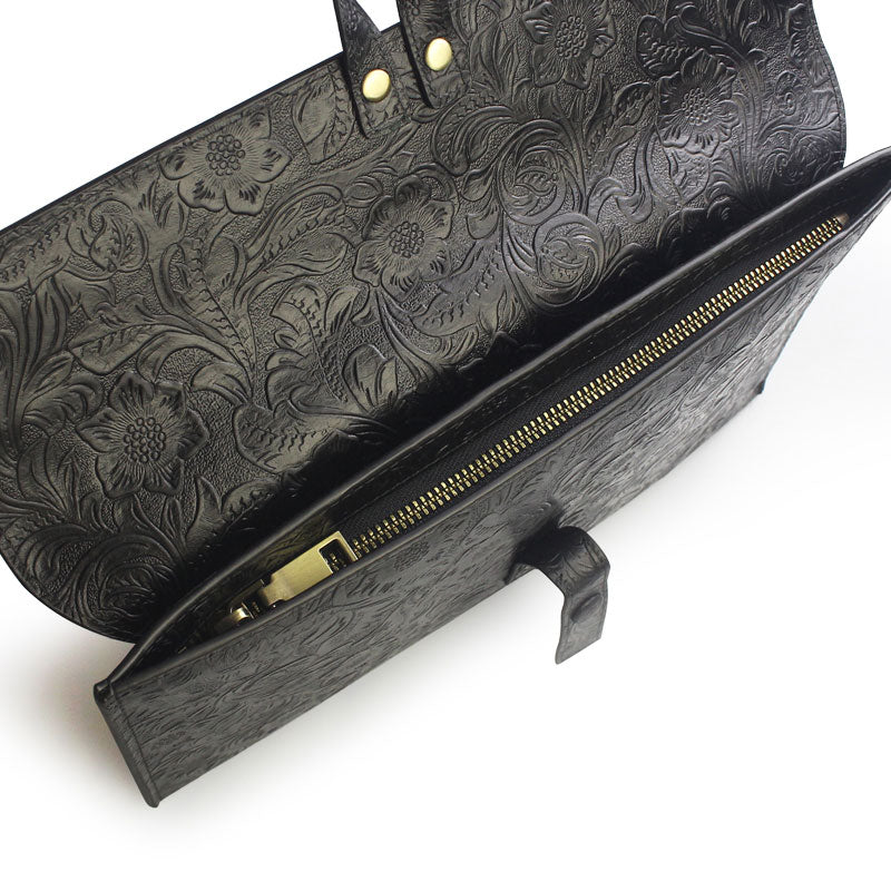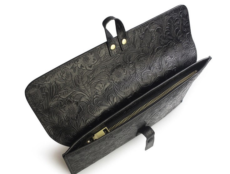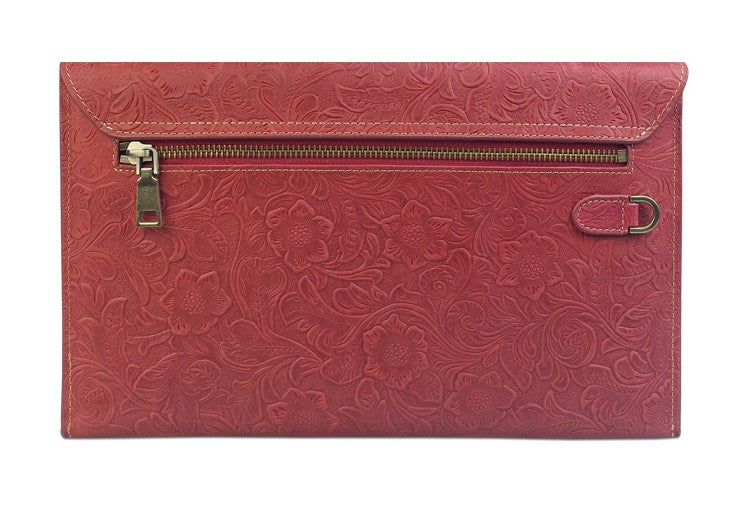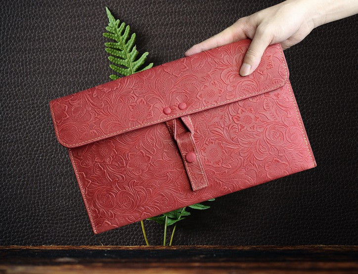 Design: Handmade Leather Floral Tooled Mens Clutch Cool Slim Wallet Zipper Clutch Wristlet Wallet for Men