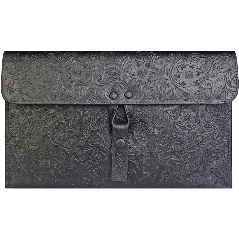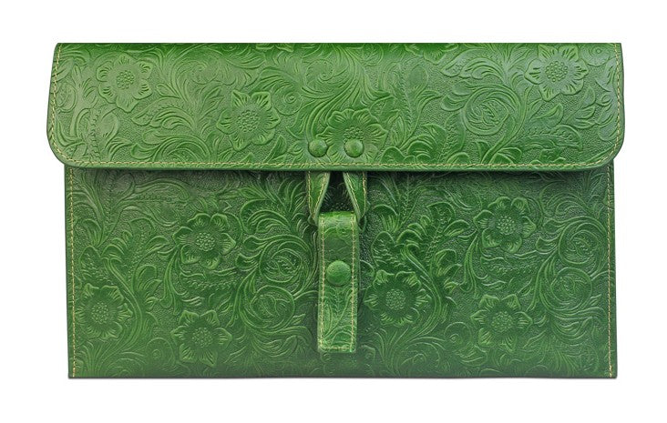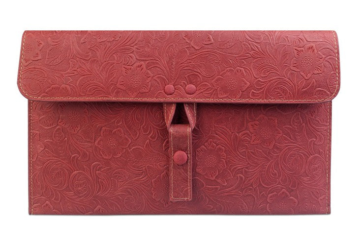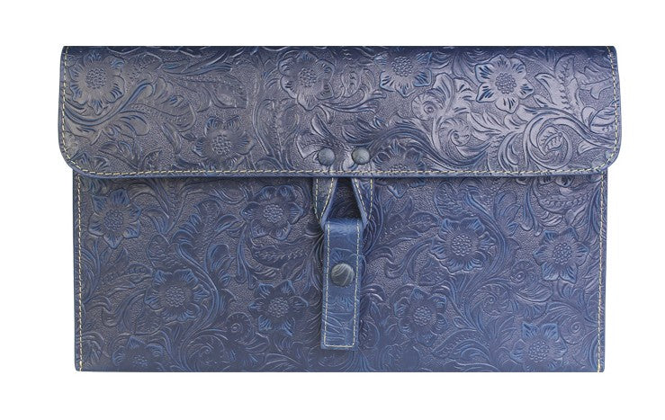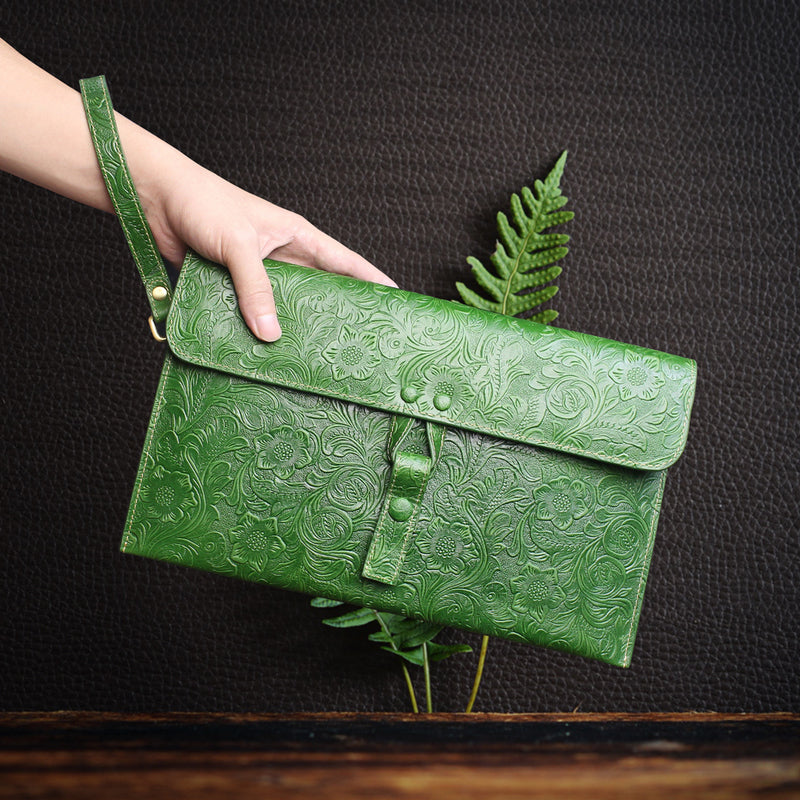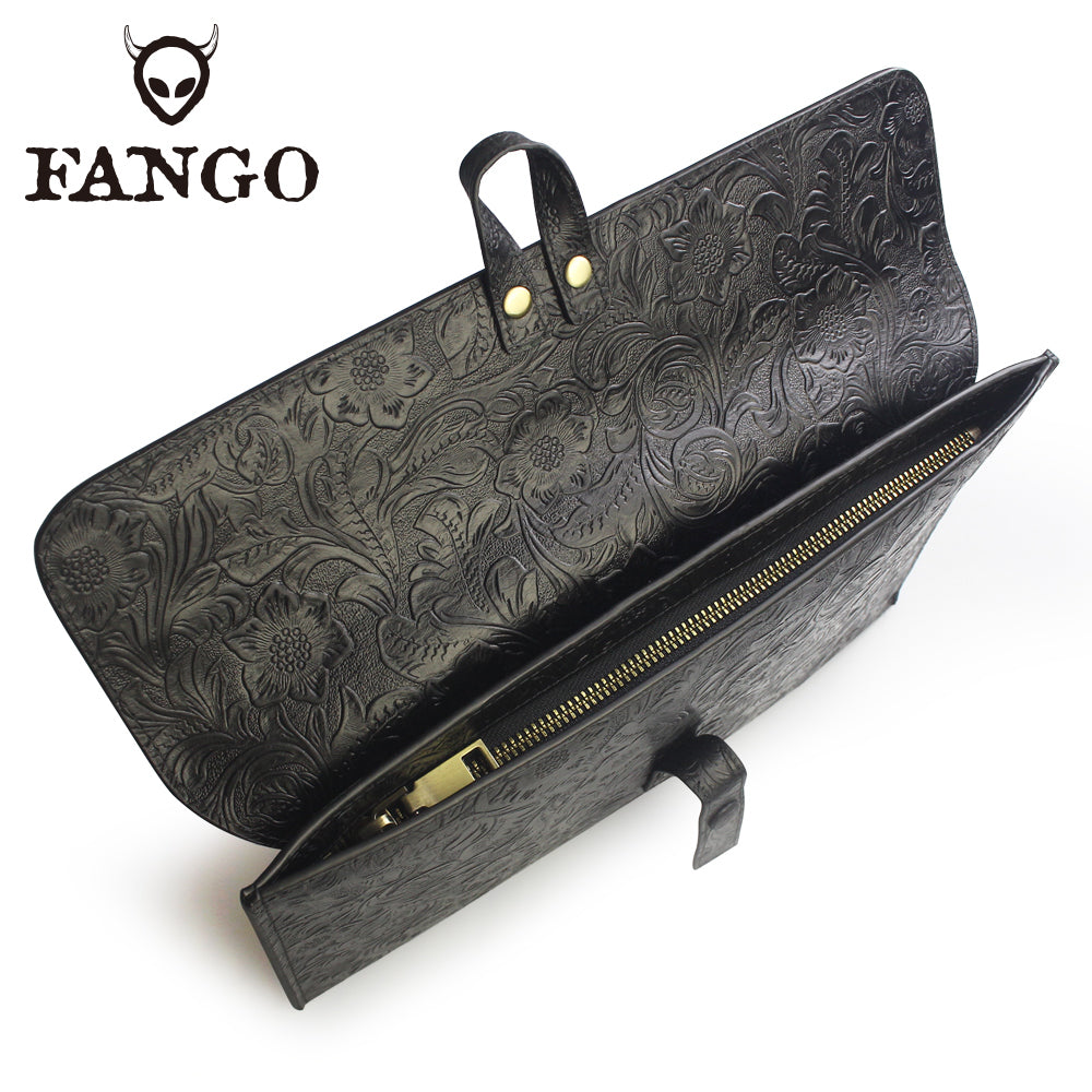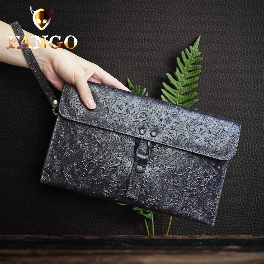 Style: Handmade Leather Floral Tooled Mens Clutch Cool Slim Wallet Zipper Clutch Wristlet Wallet for Men