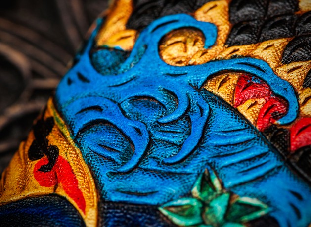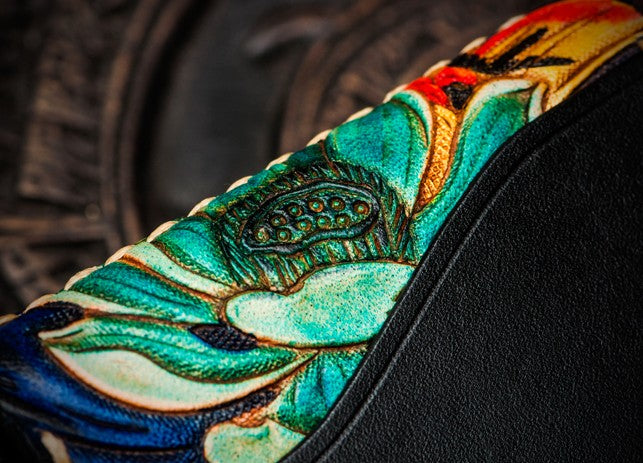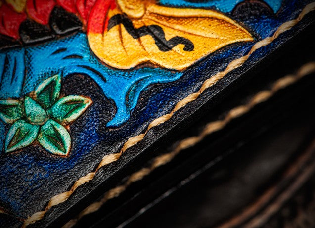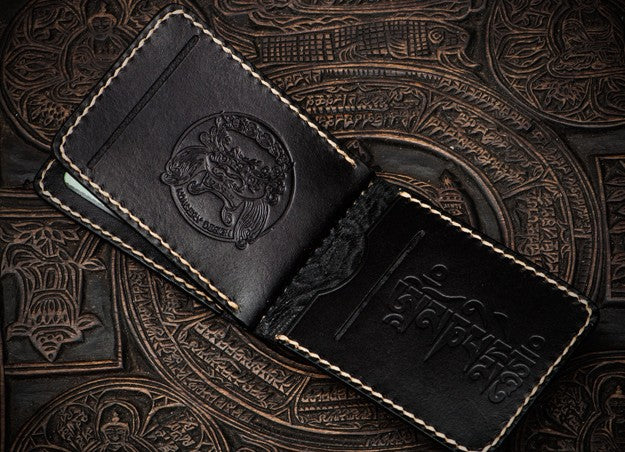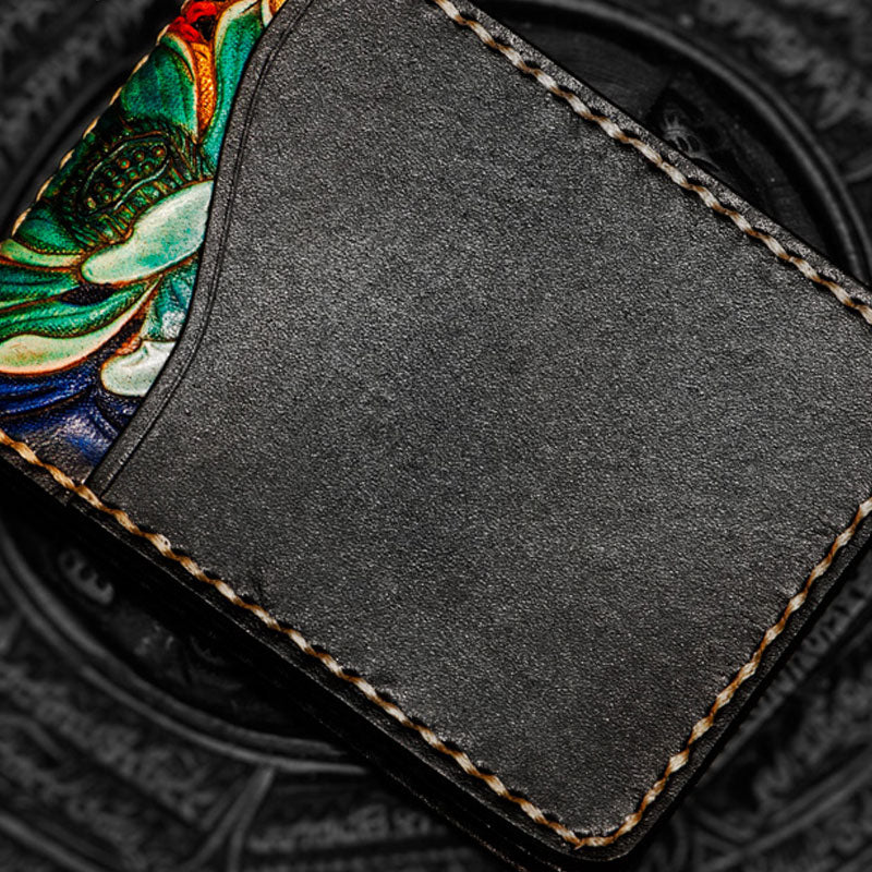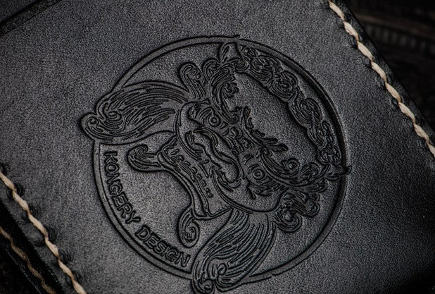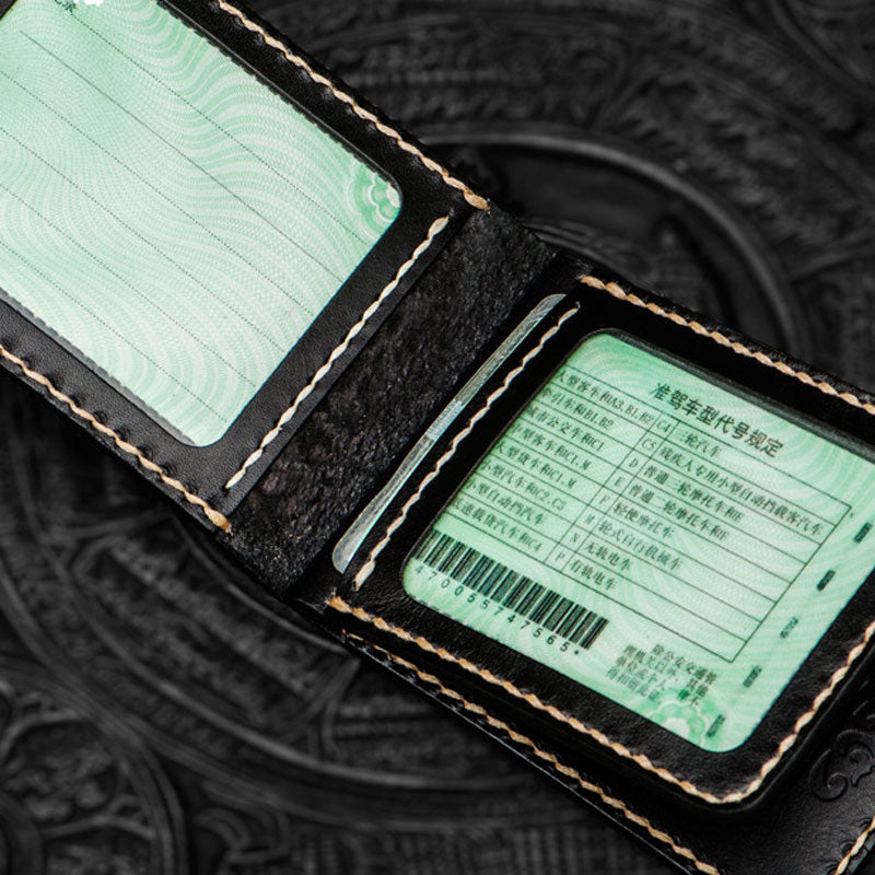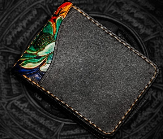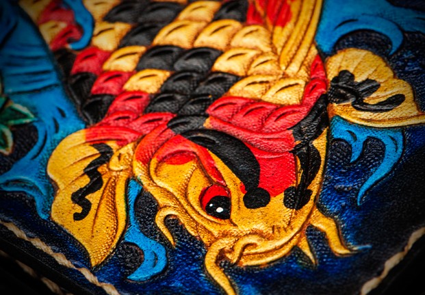 Design: Handmade Leather License Wallet Tooled Carp Mens billfold Wallet Cool Leather Wallet Slim Wallet for Men