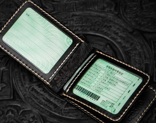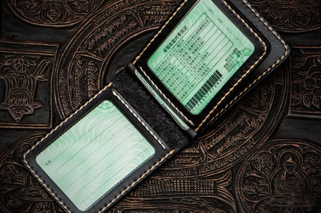 Style: Handmade Leather License Wallet Tooled Carp Mens billfold Wallet Cool Leather Wallet Slim Wallet for Men