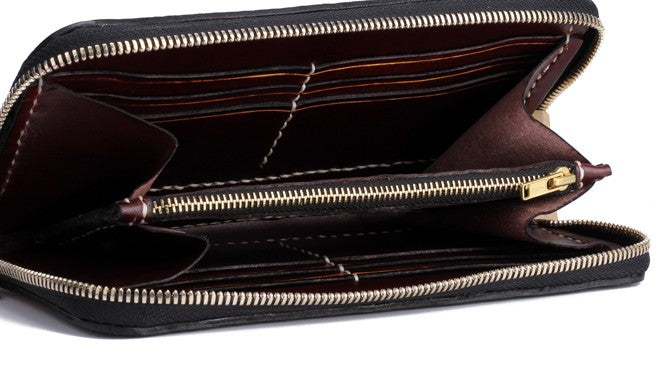 Slots: 2 full size bill slot, 12 card holders, 1 zipper slot