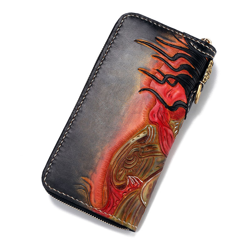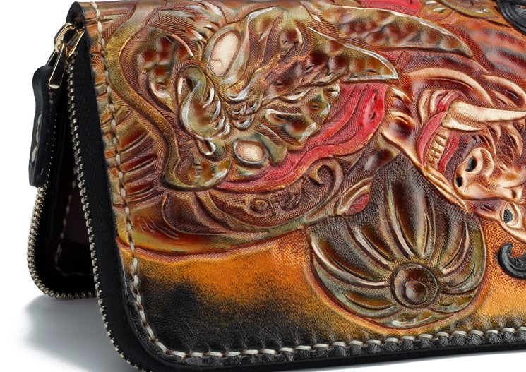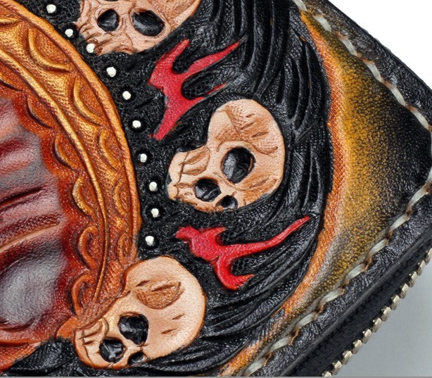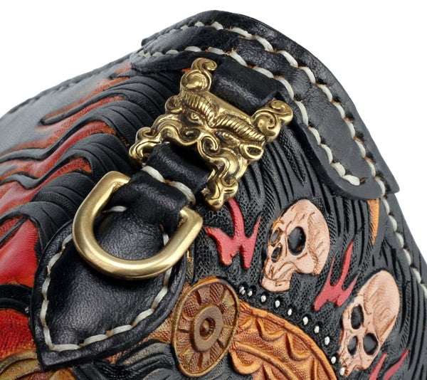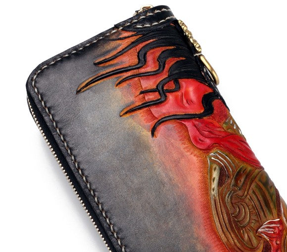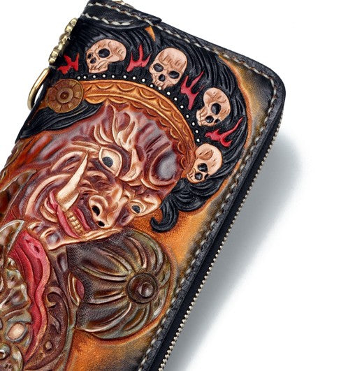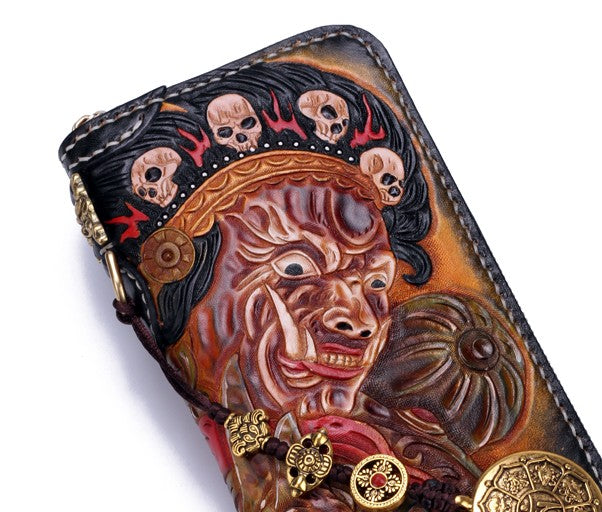 Design: Handmade Leather Mahākāla Mens Chain Biker Wallet Cool Leather Wallet With Chain Wallets for Men