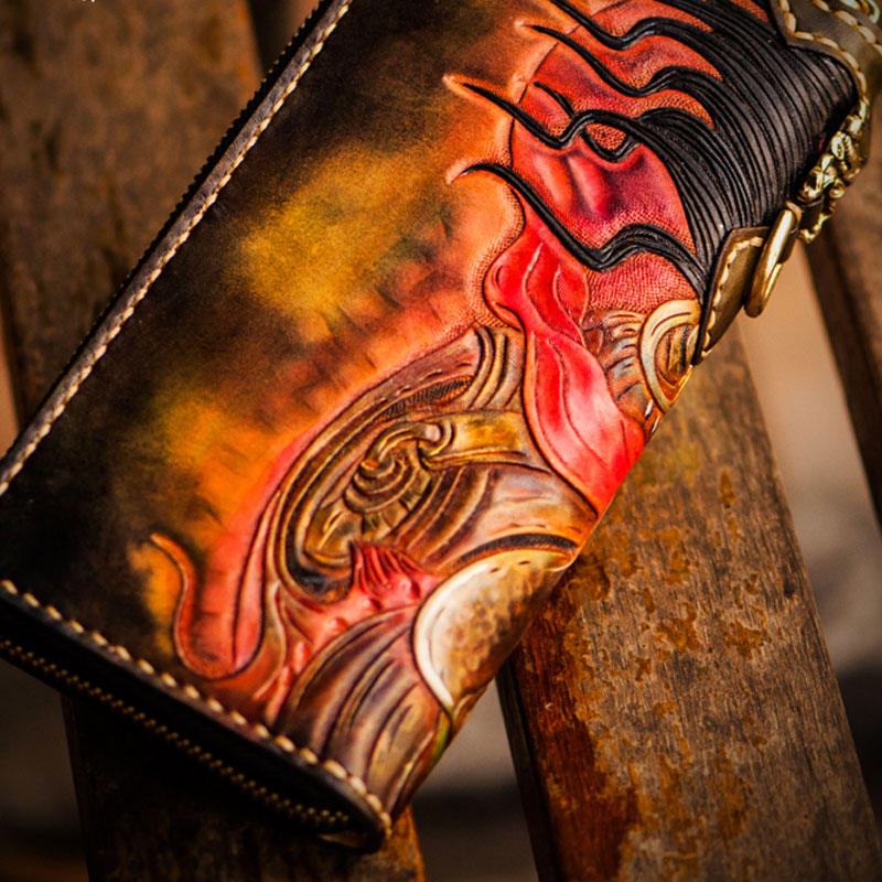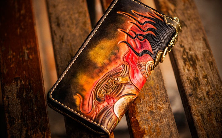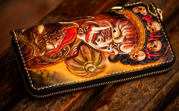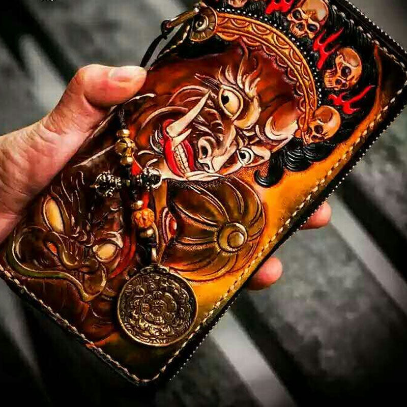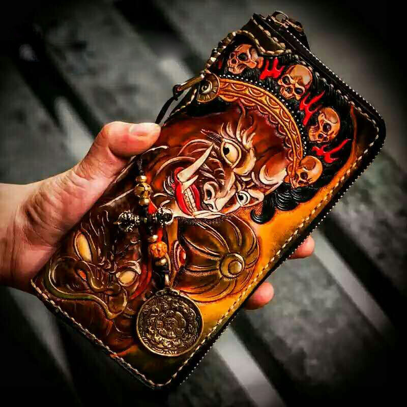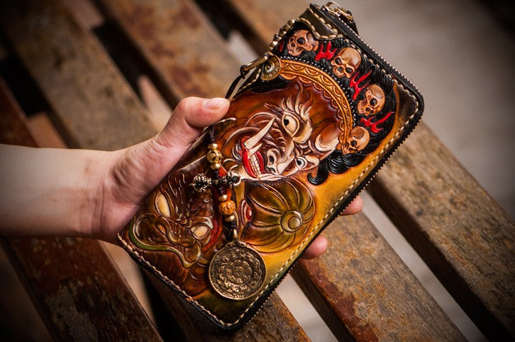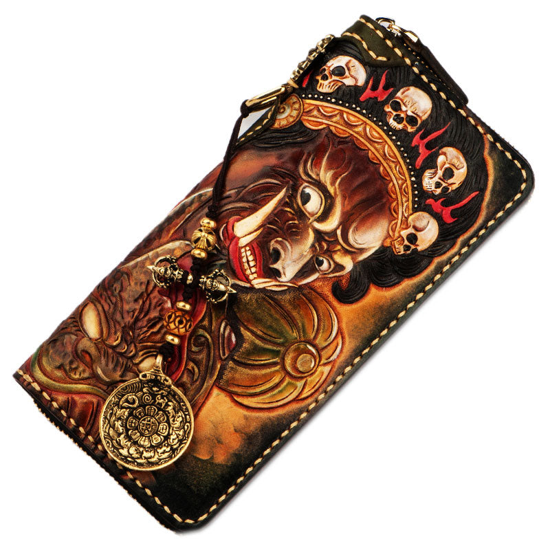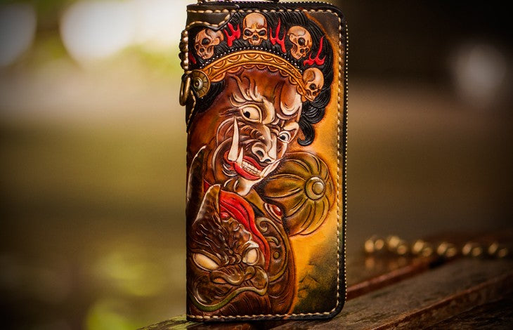 Design: Handmade Leather Mahākāla Mens Chain Biker Wallet Cool Leather Wallet With Chain Wallets for Men