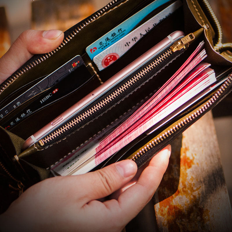 Slots: 2 full size bill slot, 8 card holders, 1 zipper slot