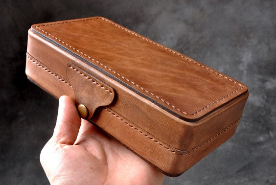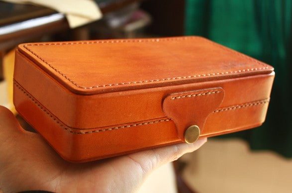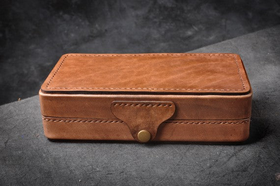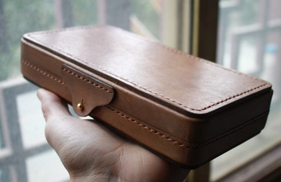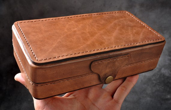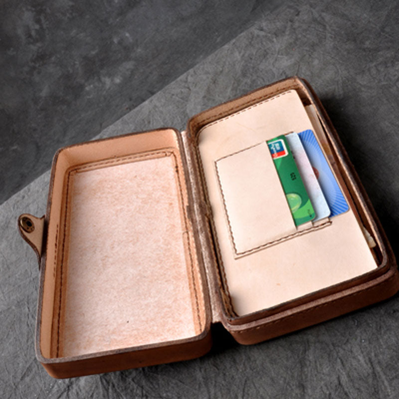 Design: Handmade Leather Mens Box Wallet Wristlet Clutch Wallet Cigarette Box for Men