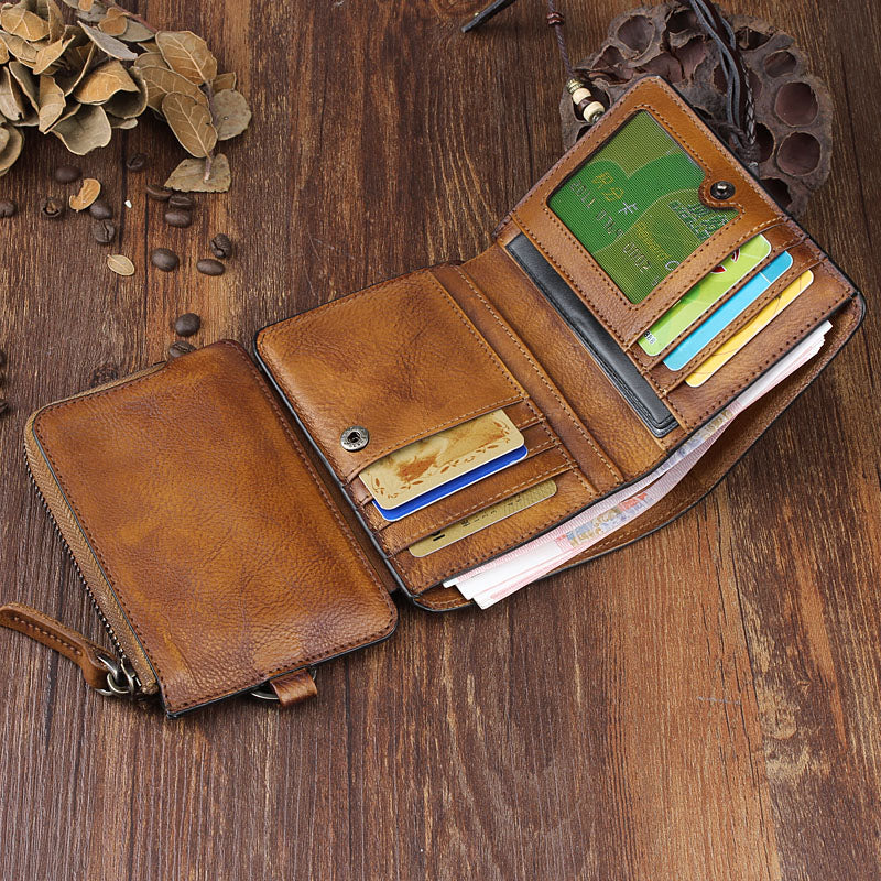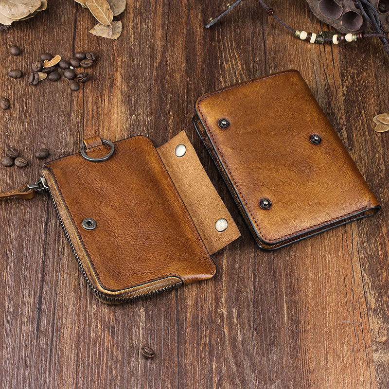 Design: Handmade Leather Mens Chain Biker Wallet Cool Leather Wallet Trifold billfold Wallets