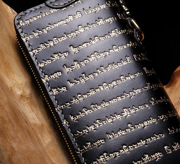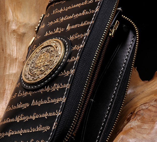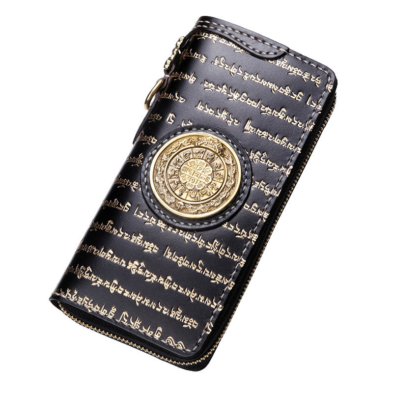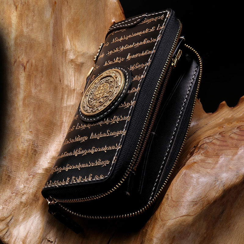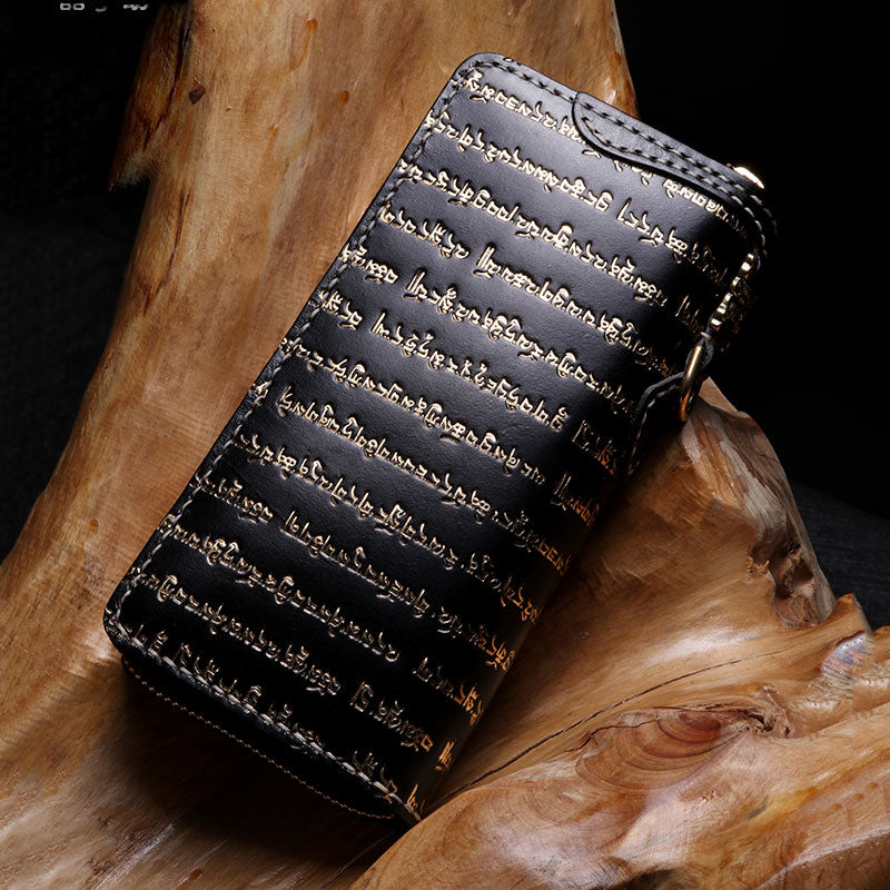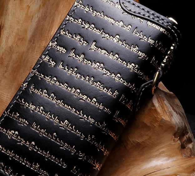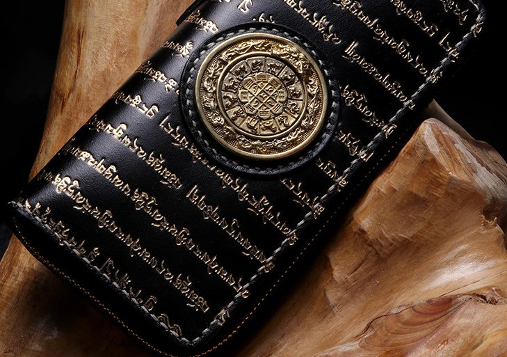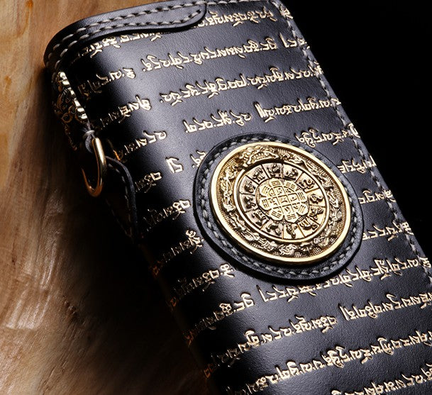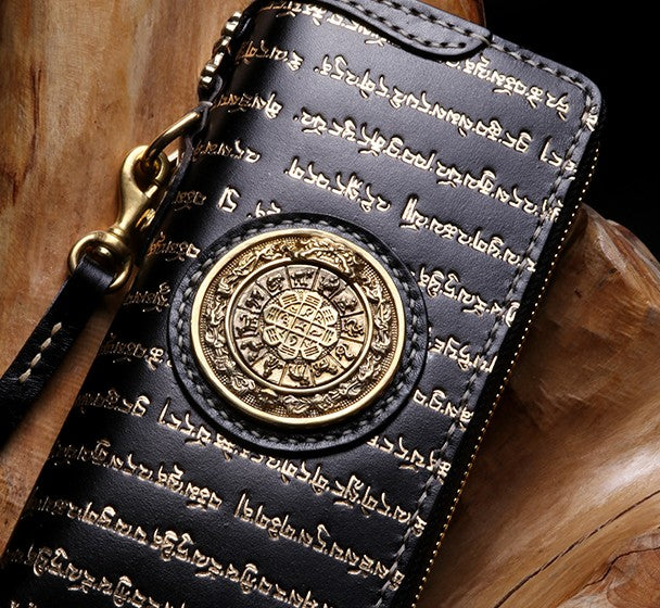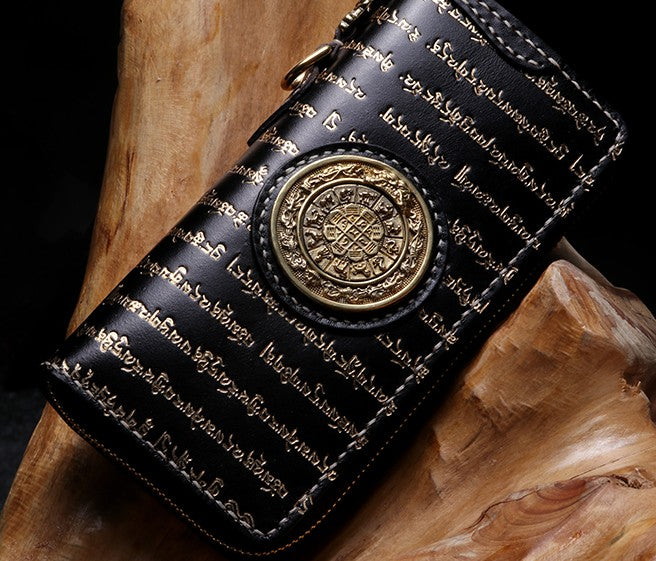 Design: Handmade Leather Mens Chain Tibetan Biker Wallet Cool Leather Wallet Long Phone Wallets for Men