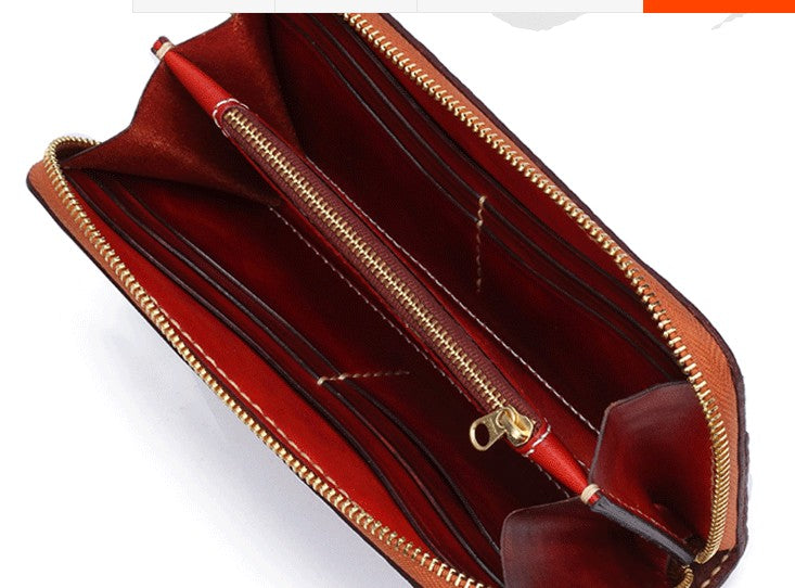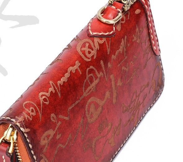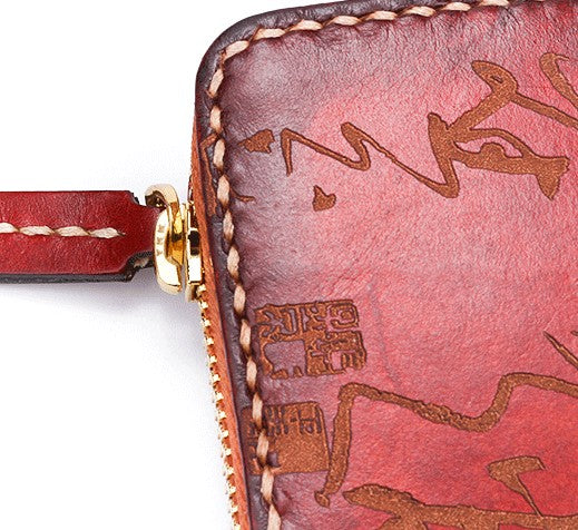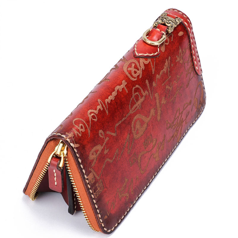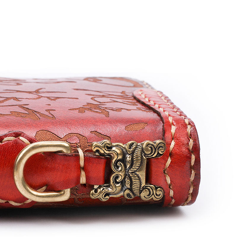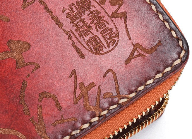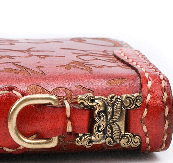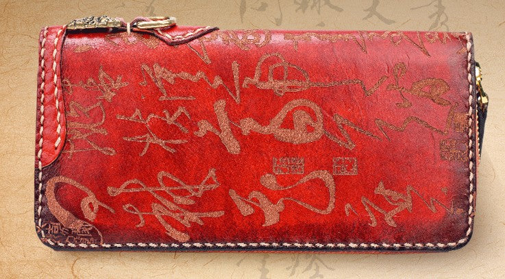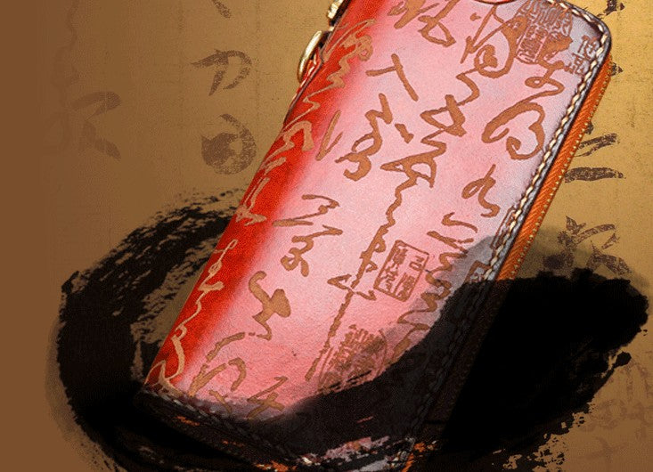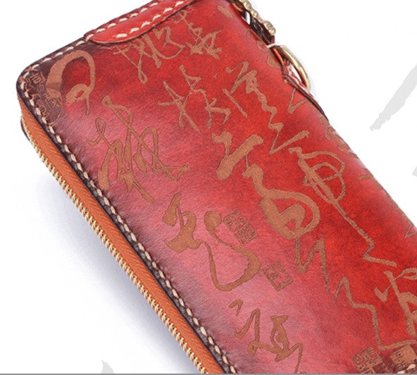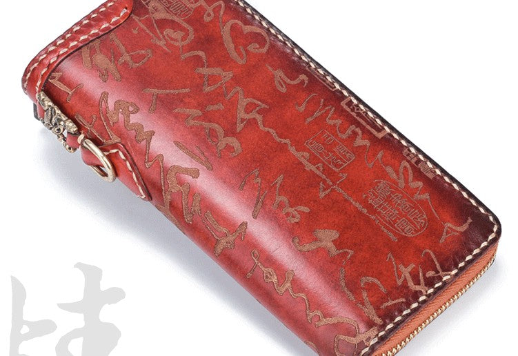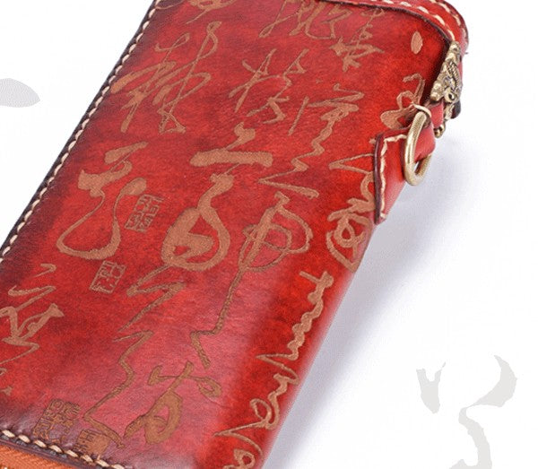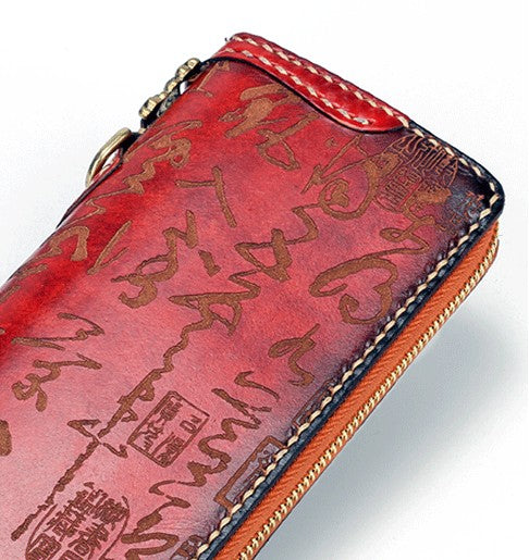 Style: Handmade Leather Mens Chinese Handwriting Chain Biker Wallet Cool Leather Wallet Long Phone Wallets for Men