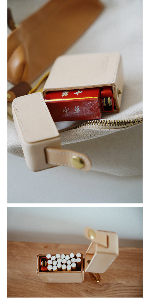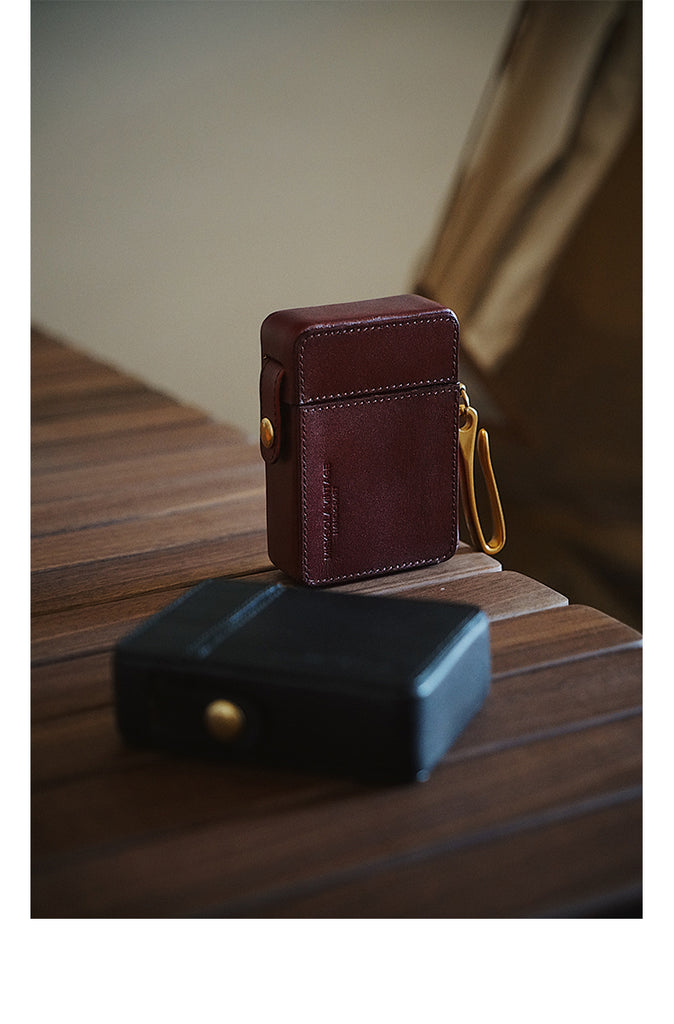 Style: Handmade Leather Mens Cigarette Case with Lighter Holder for Men Best Gift for Him