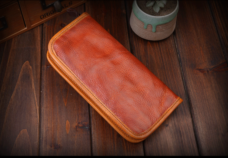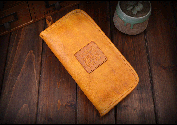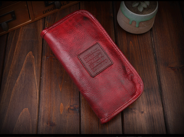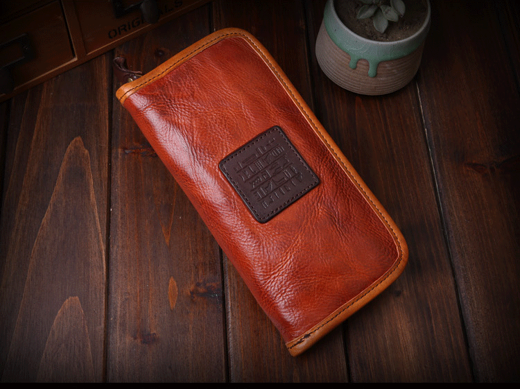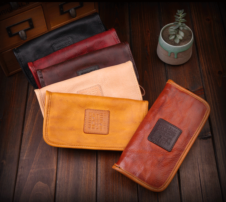 Design: Handmade Leather Mens Clutch Wallet Cool Leather Wallet Long Phone Wallets for Men