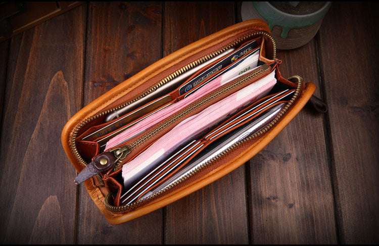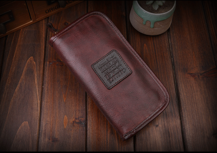 Style: Handmade Leather Mens Clutch Wallet Cool Leather Wallet Long Phone Wallets for Men