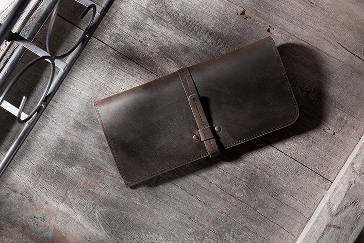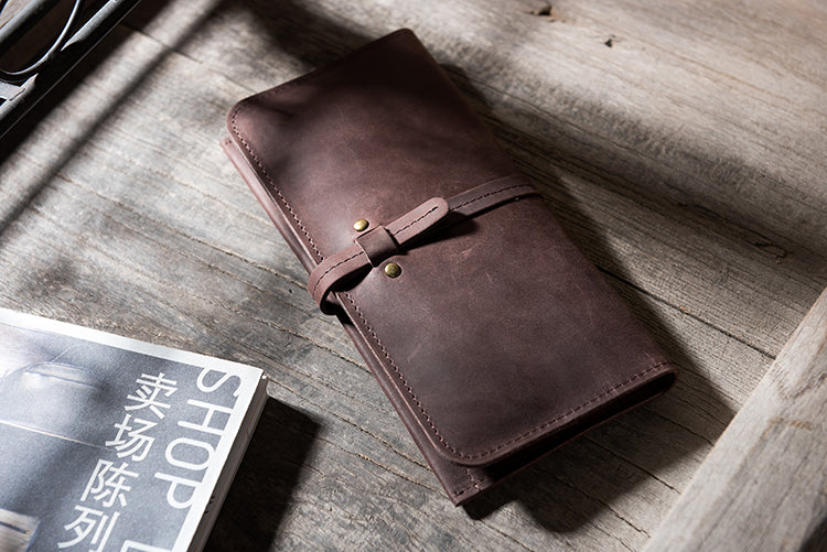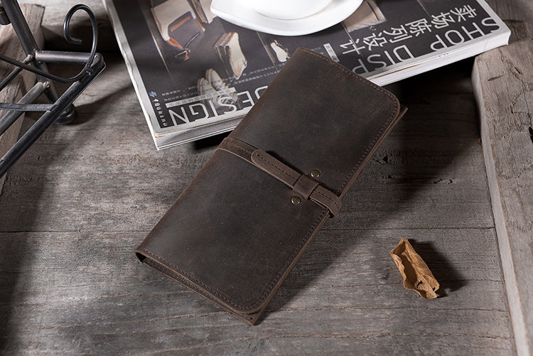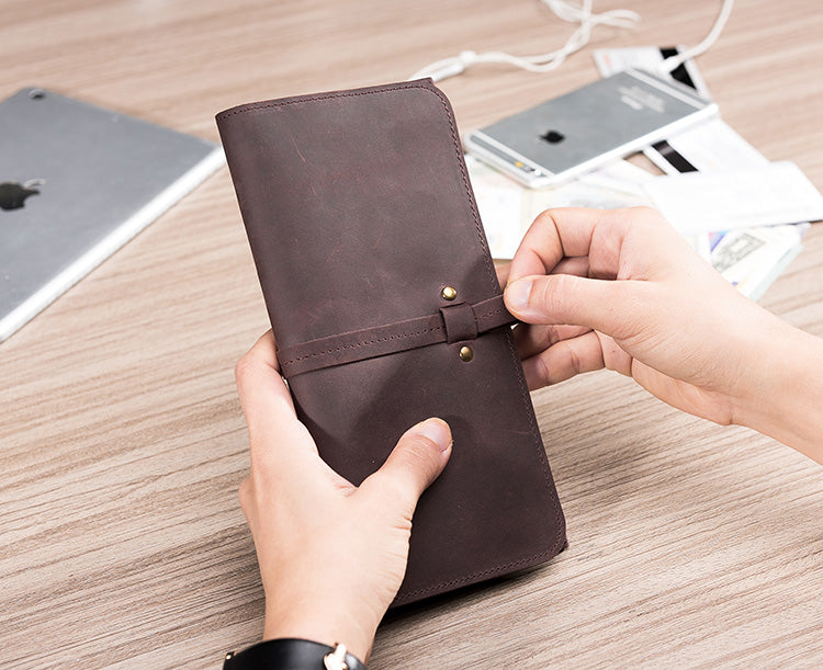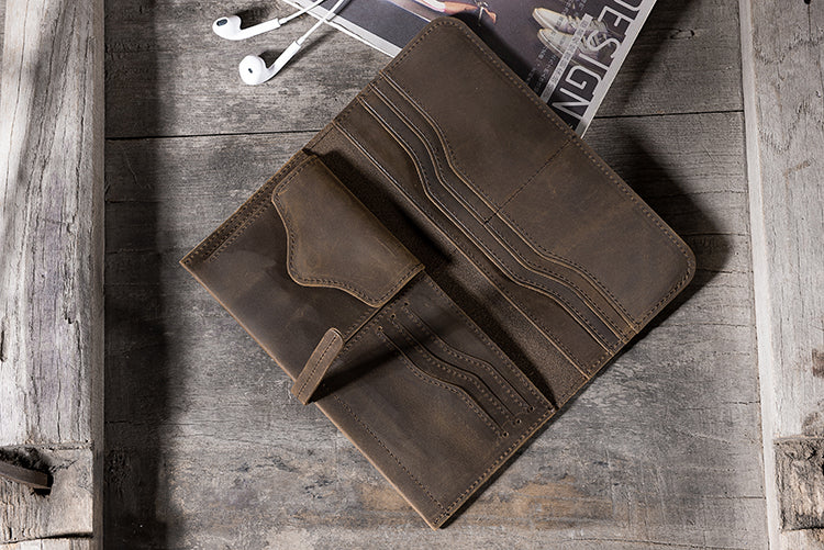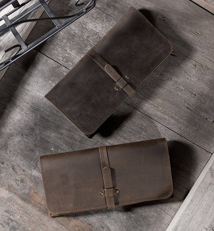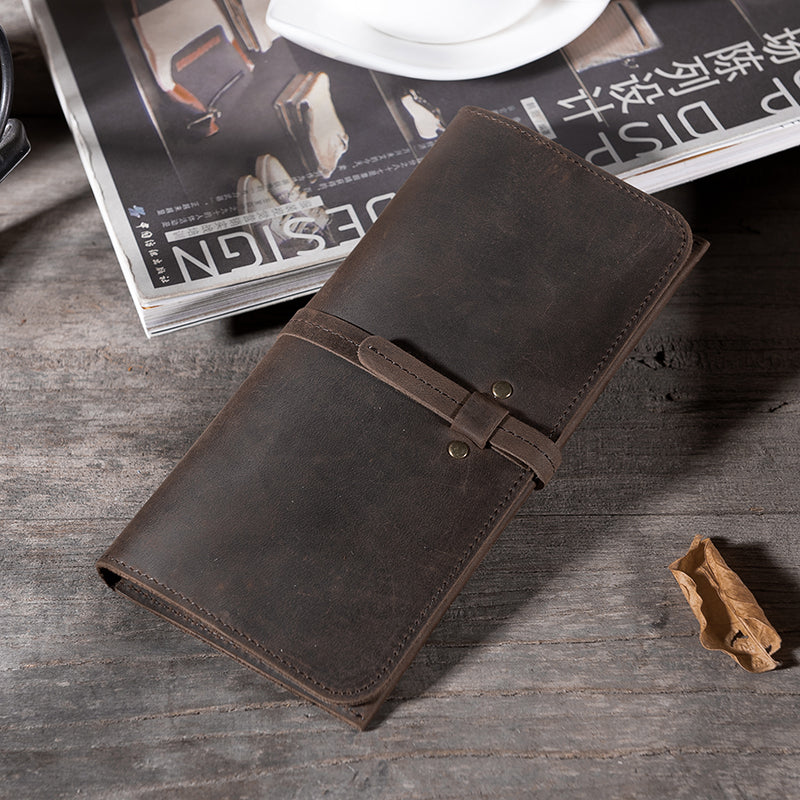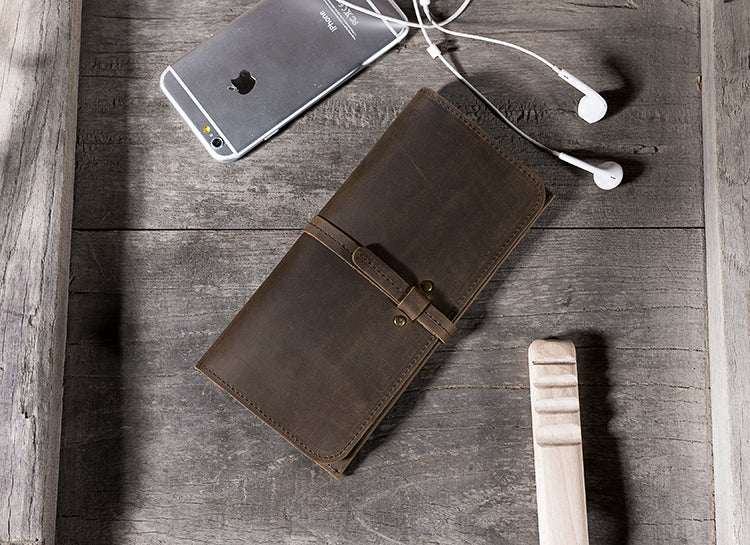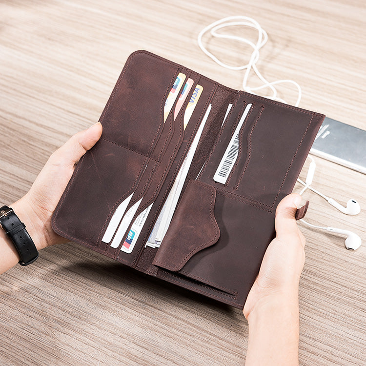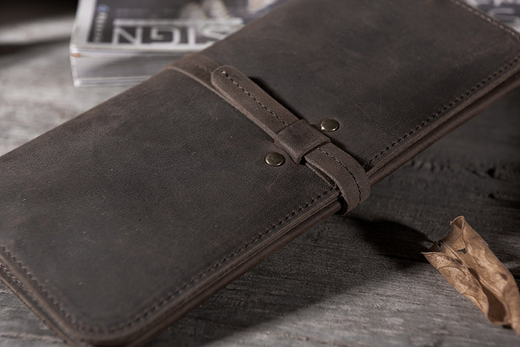 Handmade Leather Mens Clutch Wallet Cool Leather Wallet Long Phone Wallets for Men