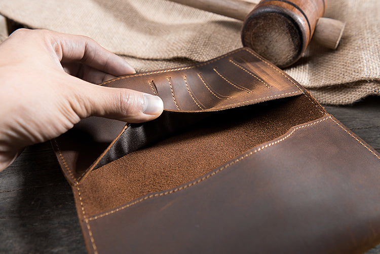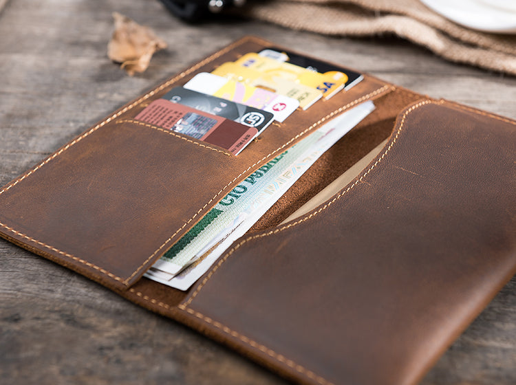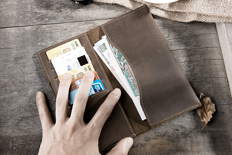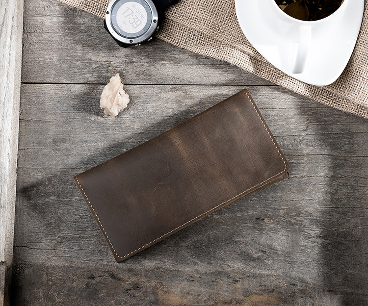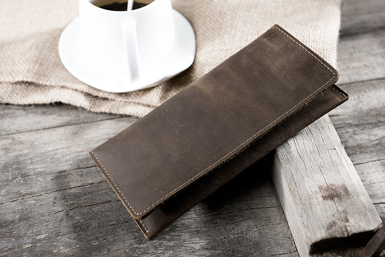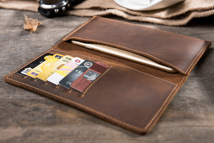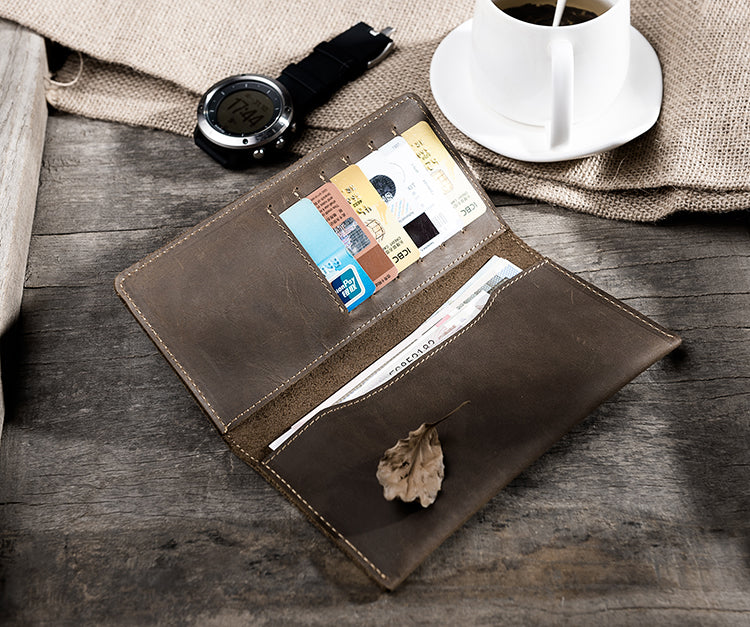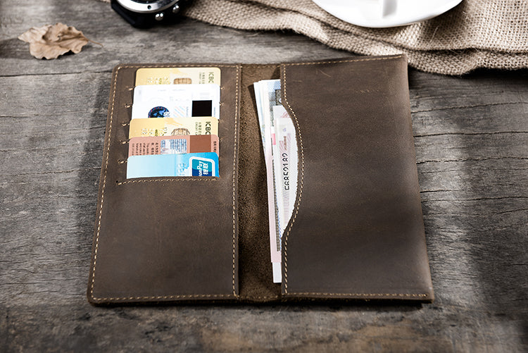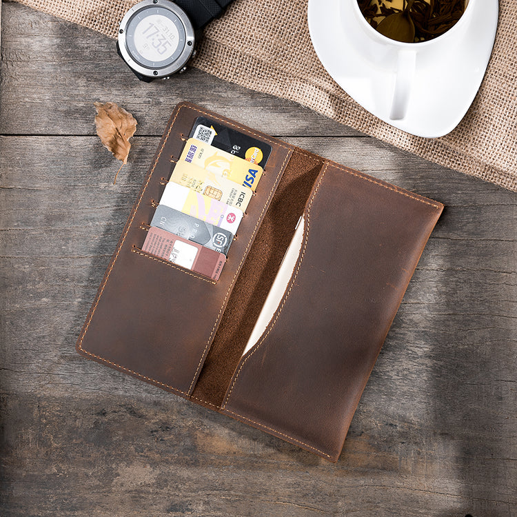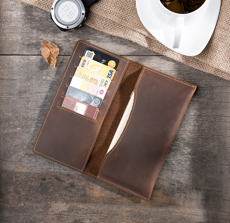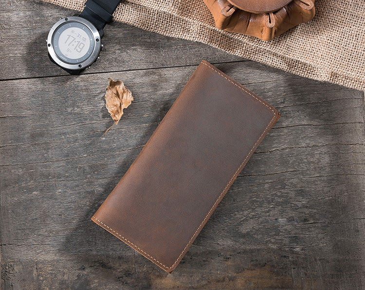 Style: Handmade Leather Mens Clutch Wallet Cool Leather Wallet Long Phone Wallets for Men