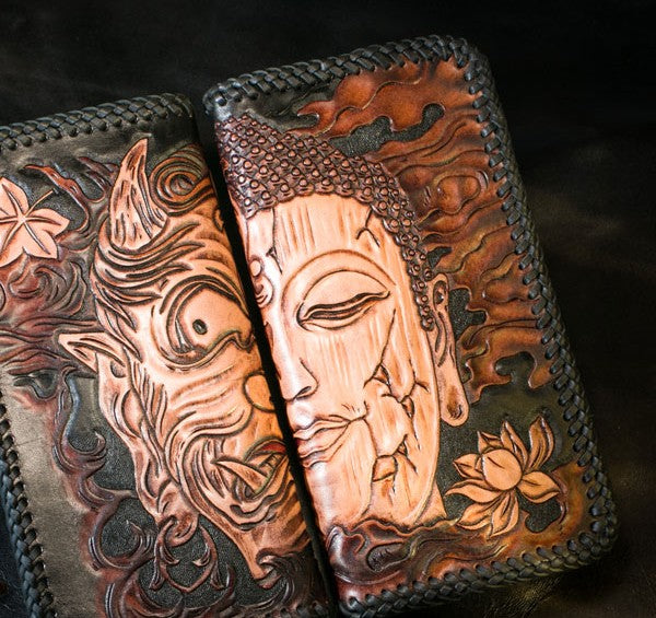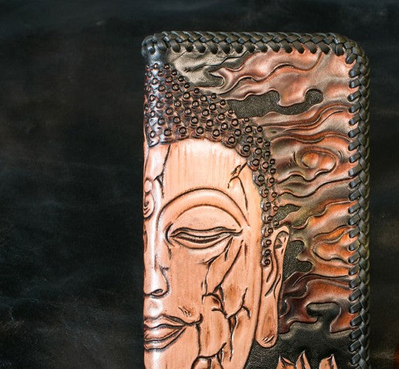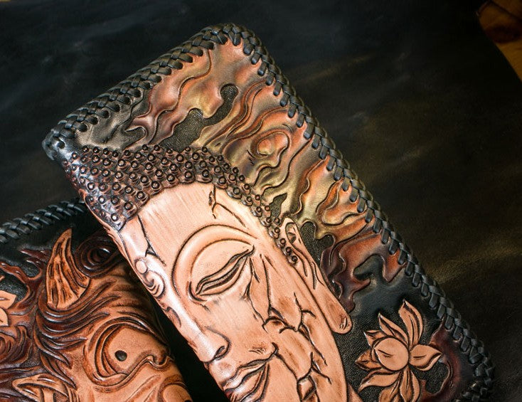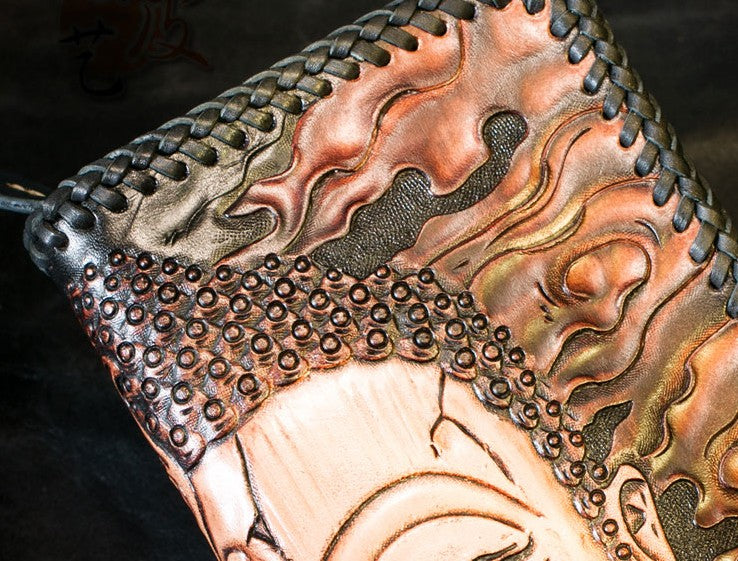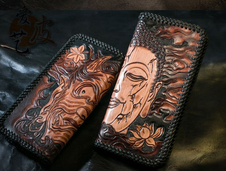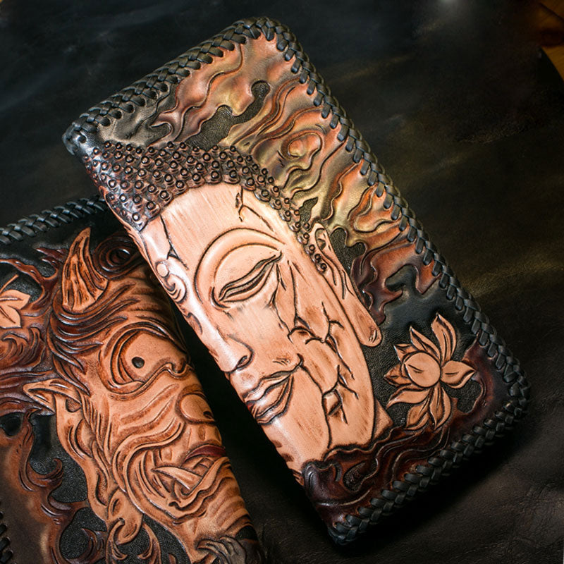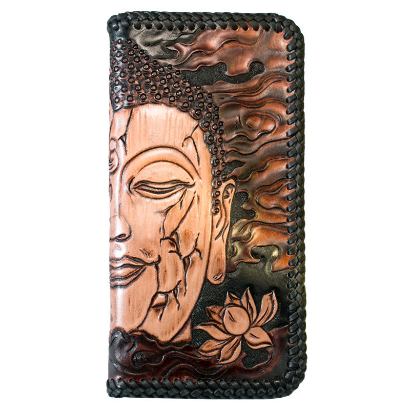 Design: Handmade Leather Mens Clutch Wallet Tooled Cool Ganesha Wallet Long Zipper Wallets for Men